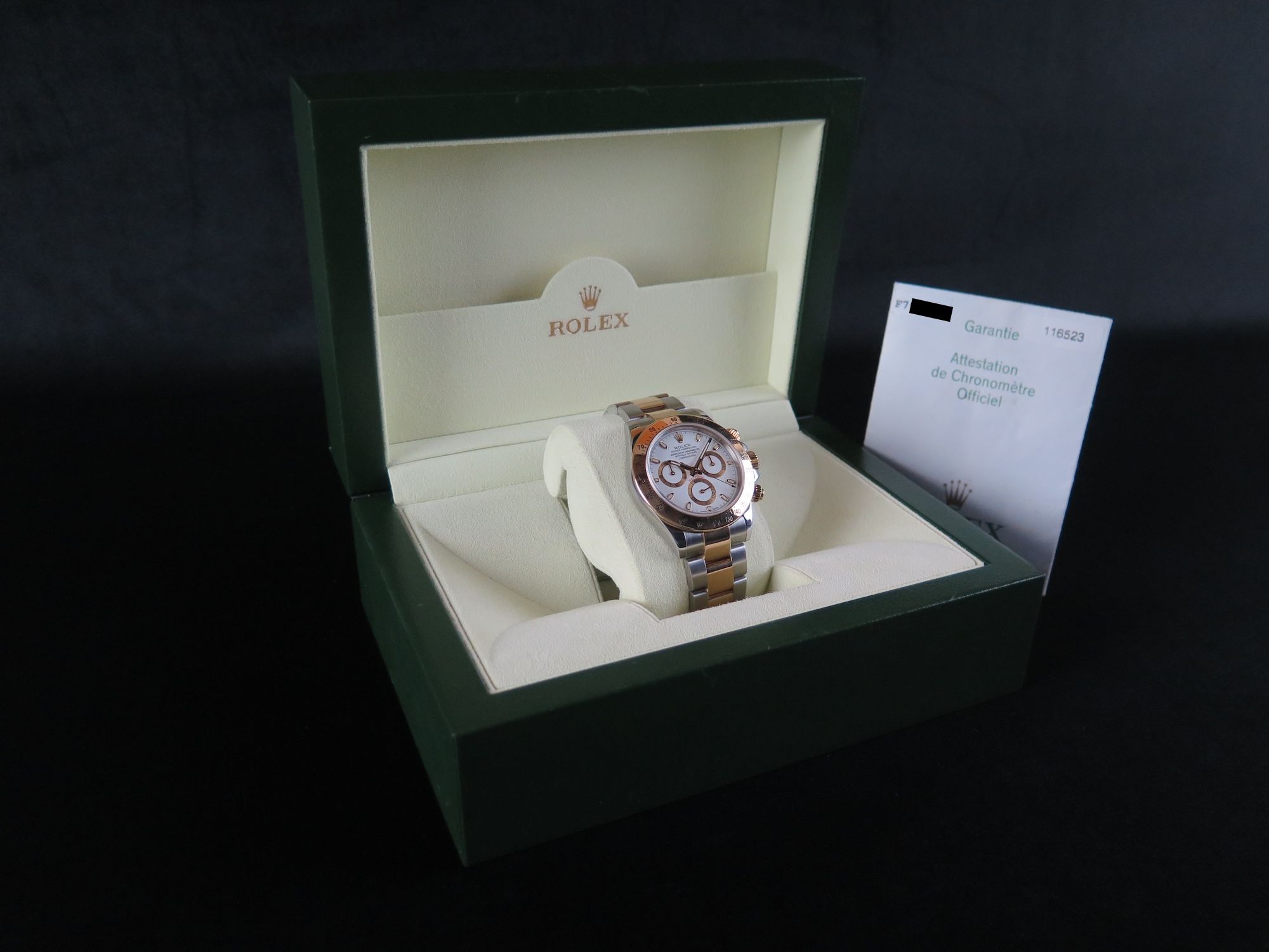 Dial colour is white.Originally sold by Rolex 08/2005, LC100 (Germany).