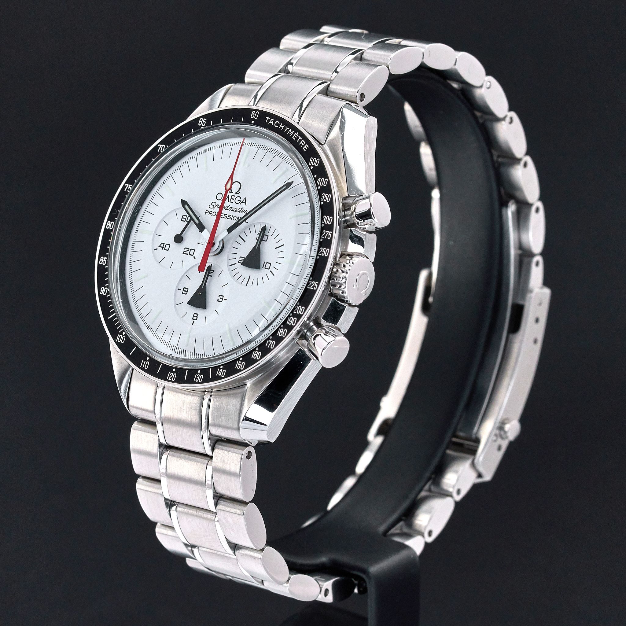 Bracelet: The watch is presented on an original stainless steel bracelet with a fastener for deployment “Omega” around 20,5 cm including the watch case, signed "Speedmaster", "Professional" with the “Omega” logo clasp.