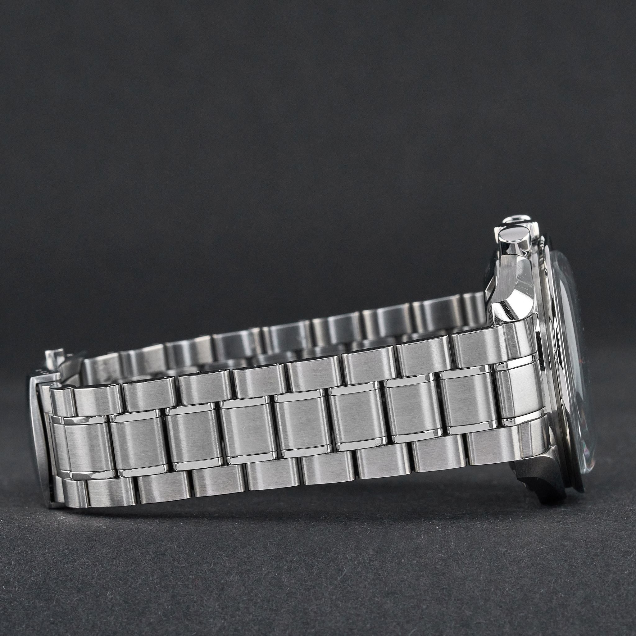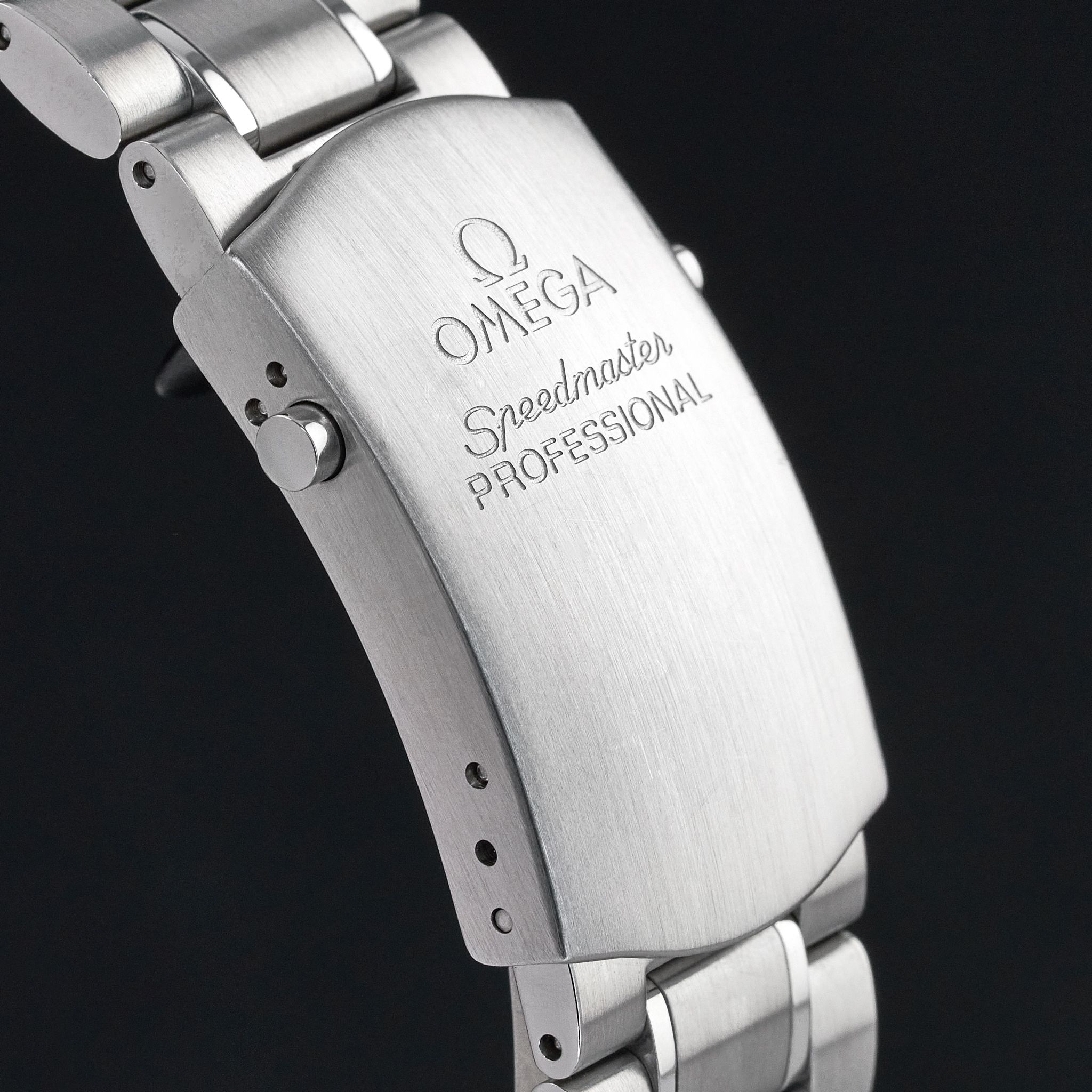 Armband: Die Uhr wird an einem originalen Edelstahlarmband mit einer Faltschließe "Omega" um 20,5 cm einschließlich des Uhrengehäuses präsentiert, signiert "Speedmaster", "Professional" mit der "Omega"-Logoschließe.