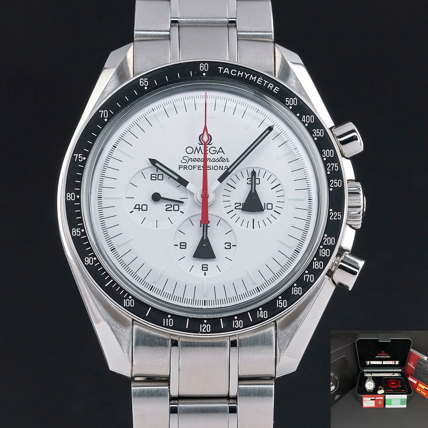 Omega Speedmaster Professional Moonwatch, 42mm, 2008, 1y warranty, Unpolished Alaska Project Limited Edition, Fullset, ref 311.32.42.30.04.001, Steel, White dial