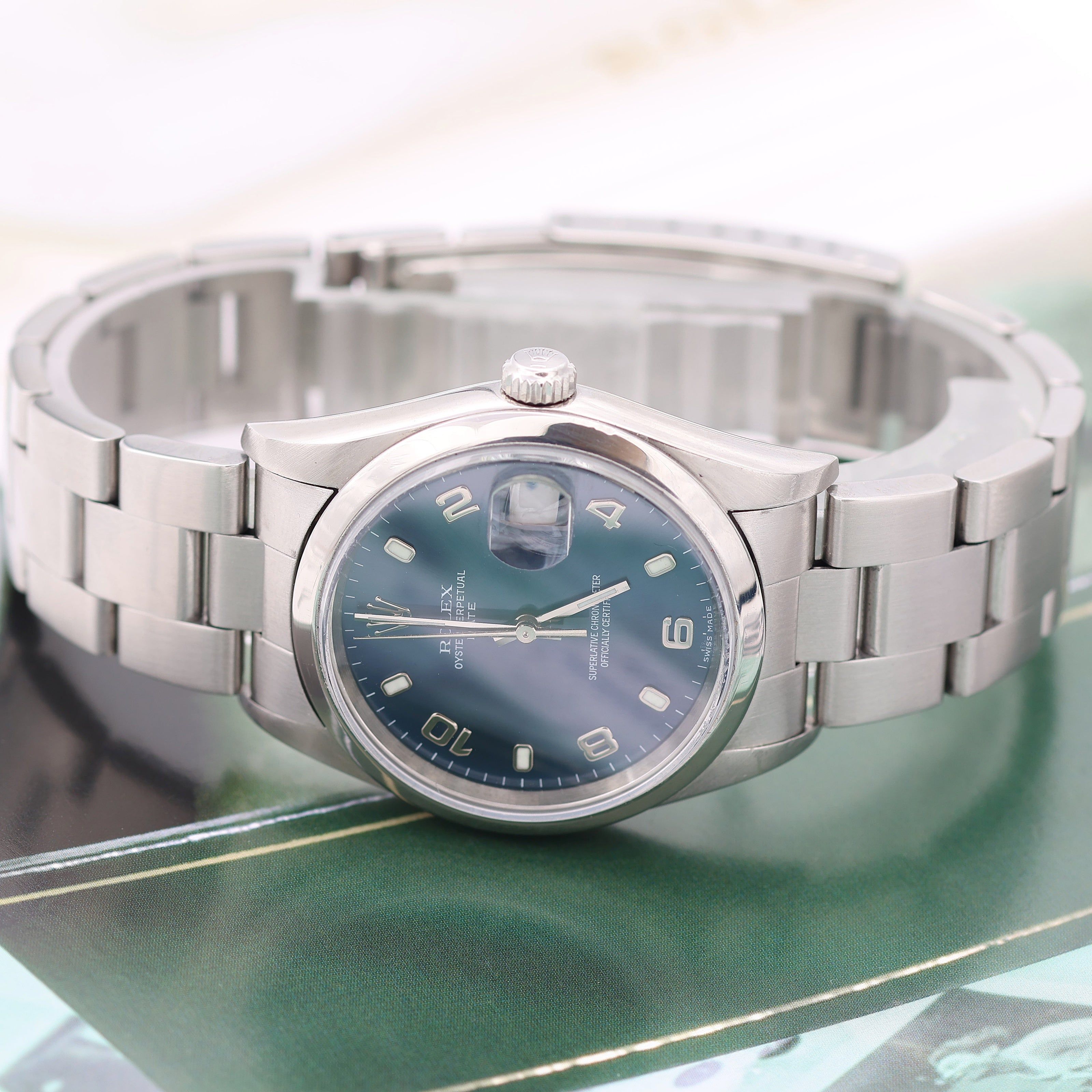 Rolex Date ref. 15200 Blue Arabic Dial Oyster Bracelet - Full Set