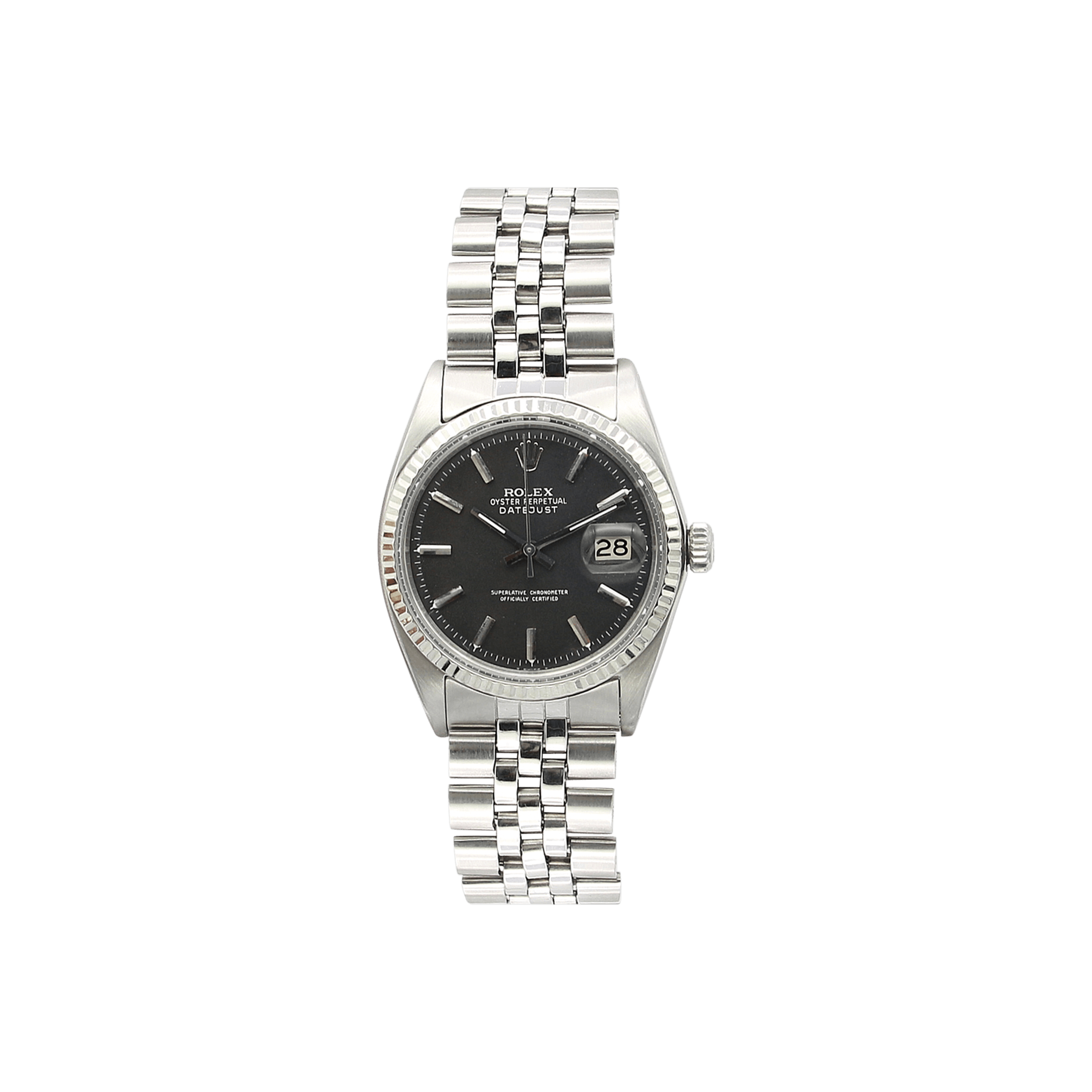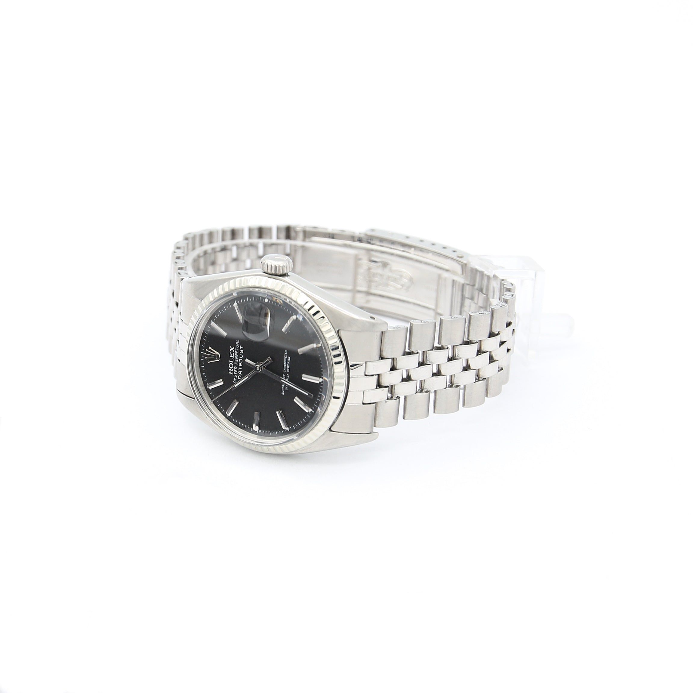 For sale at Debonar Watches: pre-owned Rolex Datejust ref. 1601 in steel and white gold, with a contemporary black matte dial, and a Jubilee bracelet.The Rolex Datejust is considered the definitive “watch”: its design has barely changed in 60 years and is a familiar sight even to non-enthusiasts. This Rolex has all the signature aesthetics of a Datejust, which include a fluted bezel, baton hour markers, and the Cyclops magnifying bubble over the date window. BRAND ROLEX MODEL DATEJUST REFERENCE 1601 CASE MATERIAL STEEL MOVEMENT AUTOMATIC DIMENSION 36 MM DIAL BLACK MATTE BEZEL WHITE GOLD CRYSTAL PLEXIGLASS BRACELET TYPE BRACELET BRACELET MATERIAL JUBILEE BRACELET LENGHT 17 CM ORIGINAL BOX NO ORIGINAL PAPERS NO YEAR APPROX. THE '70s CONDITION GOOD