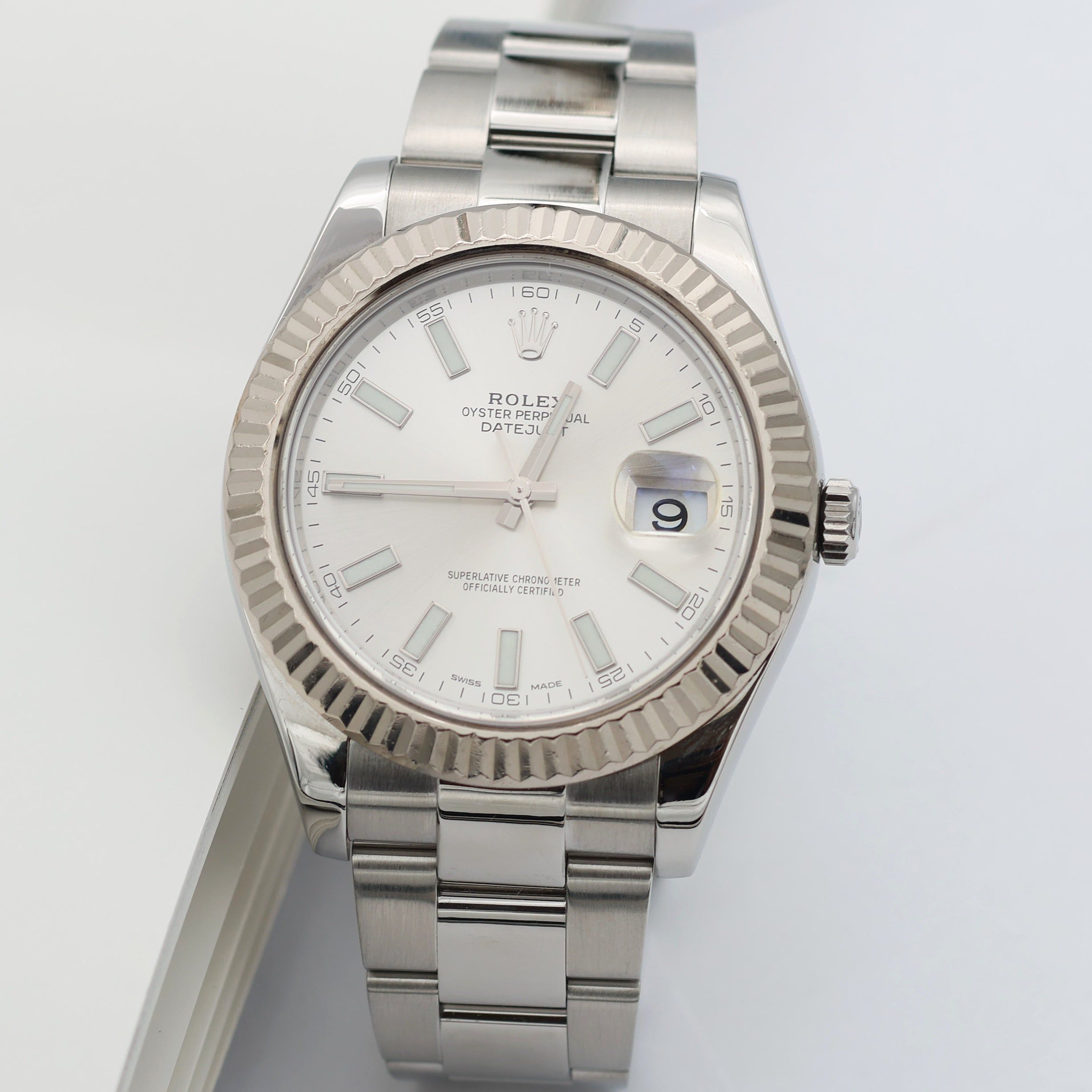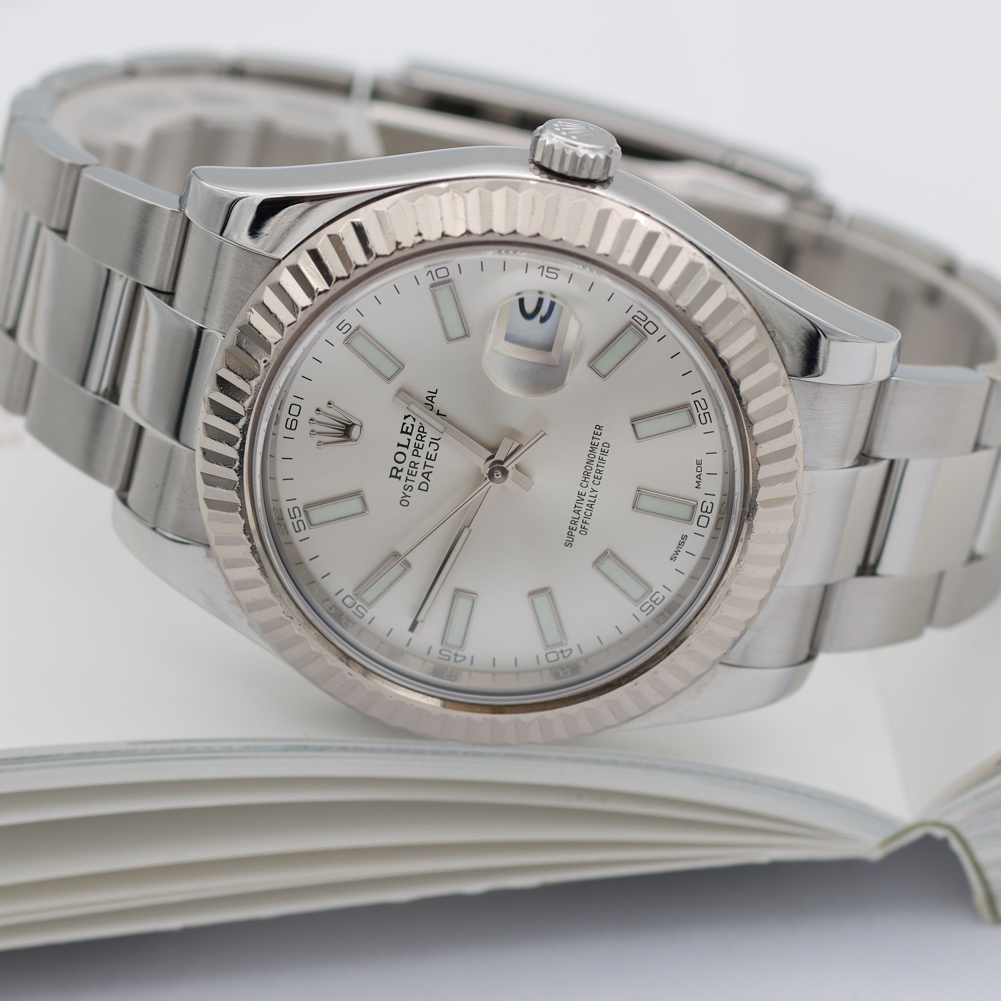 For sale at Debonar Watches: pre-owned Rolex Datejust II ref. 116334 full set, with a sunny silver dial.Released in 2009 to cater to a more modern audience, the Rolex Datejust II did not hang around in the collection for very long. By 2016, Rolex decided to discontinue the Datejust II, dropping it from the catalog in favor of the Datejust 41.Models such as the Rolex 116334 continue to be a desired watch by collectors. By far the sportiest option among all Datejust models, the Datejust II is an ideal daily Rolex for the modern man who appreciates classic design reinterpreted to suit contemporary style.The reference 116334 is the same basic design as the original Rolesor Datejust that dominated the men’s luxury watch market for several decades. However, the reference 116334 reflects all of the changes that would have occurred to the regular Datejust line: this Rolex reflects all of the stylistic cues and requests of modern times. BRAND ROLEX MODEL DATEJUST II REFERENCE 116334 CASE MATERIAL STEEL MOVEMENT AUTOMATIC DIMENSION 41 MM DIAL SILVER BEZEL WHITE GOLD CRYSTAL SAPPHIRE BRACELET TYPE OYSTER BRACELET MATERIAL STEEL BRACELET LENGHT 18 CM ORIGINAL BOX YES ORIGINAL PAPERS YES YEAR APPROX. END '10s CONDITION EXCELLENT