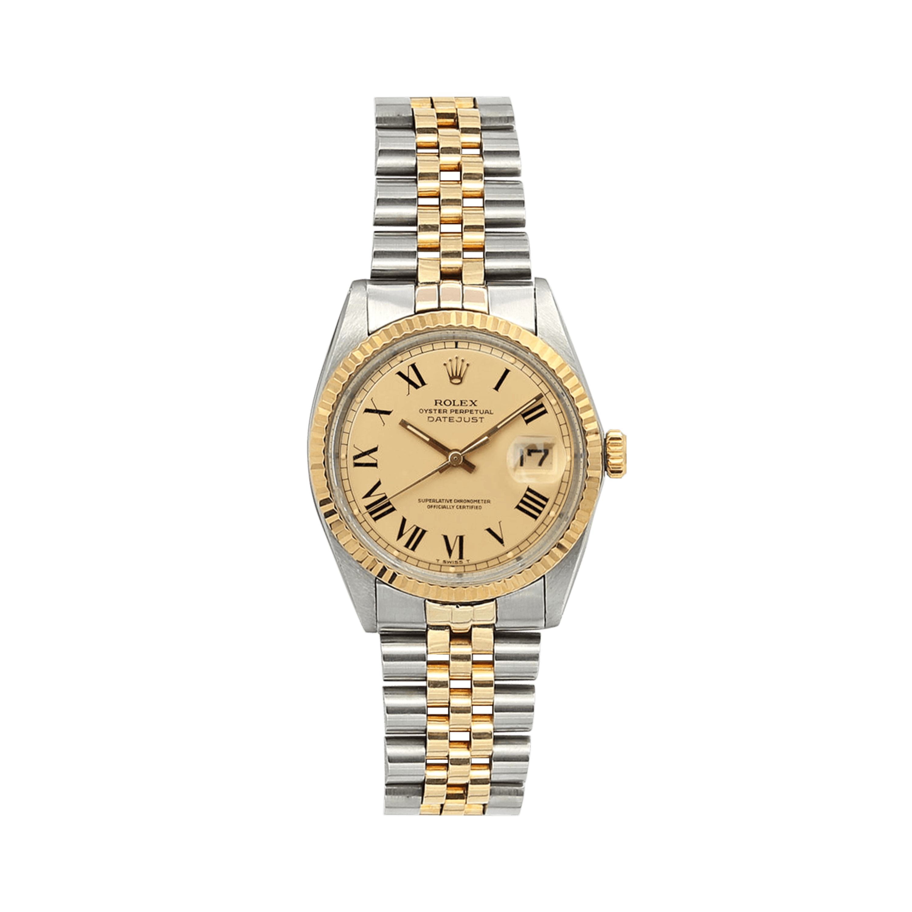 For sale at Debonar Watches: pre-owned Rolex Datejust ref. 1601 in steel and yellow gold, with a beautiful Champagne Buckley Dial, and a Jubilee bracelet.The Rolex Datejust is considered the definitive “watch”: its design has barely changed in 60 years and is a familiar sight even to non-enthusiasts. This Rolex has all the signature aesthetics of a Datejust, which include a fluted bezel, baton hour markers, and the Cyclops magnifying bubble over the date window. BRAND ROLEX MODEL DATEJUST REFERENCE 1601 CASE MATERIAL STEEL MOVEMENT AUTOMATIC DIMENSION 36 MM DIAL CHANPAGNE BUCKLEY BEZEL YELLOW GOLD CRYSTAL PLEXIGLASS BRACELET TYPE BRACELET BRACELET MATERIAL JUBILEE BRACELET LENGHT 17 CM ORIGINAL BOX NO ORIGINAL PAPERS NO YEAR APPROX. THE '70s CONDITION GOOD