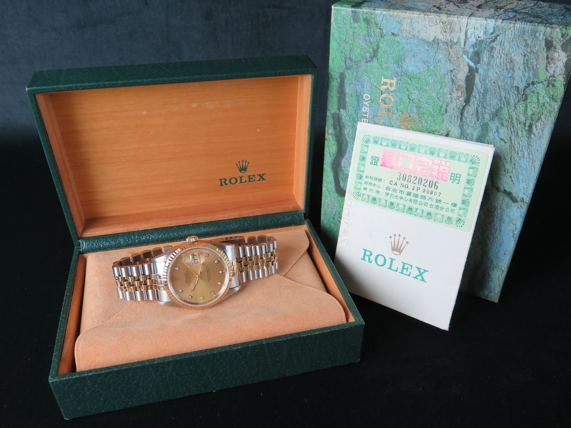 Dial colour is champagne with diamond index.Originally sold by Rolex 02/1994, LC440 (Taiwan).