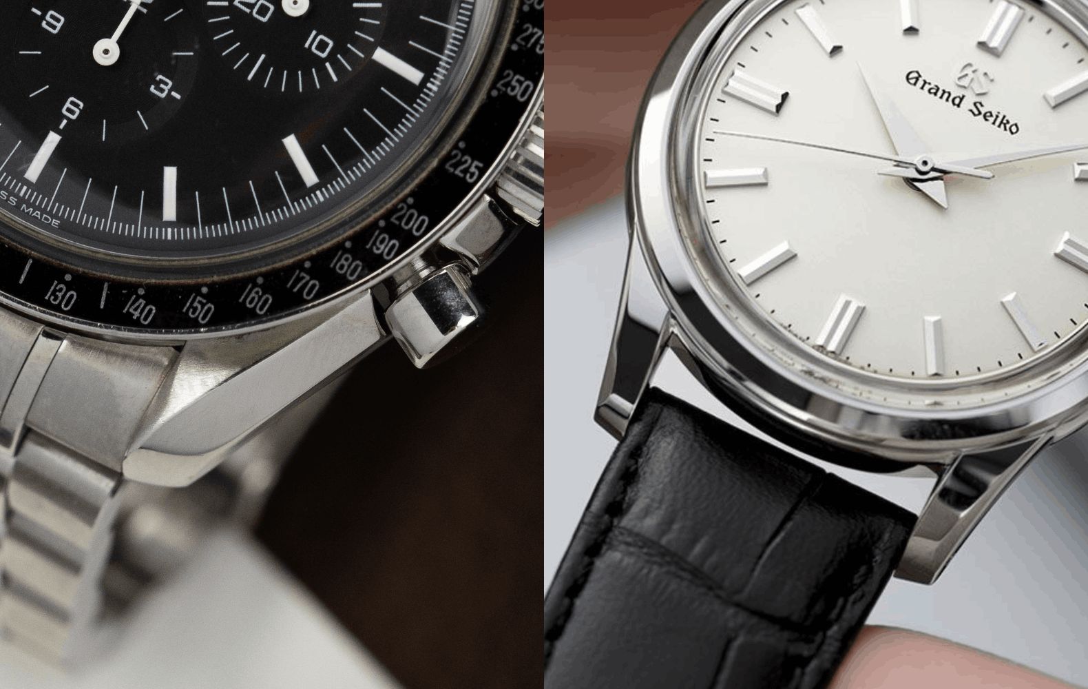 Los salientes metálicos de la caja de un reloj conectan la caja a la correa o brazalete. Sostienen las barras de resorte que fijan la correa en su sitio y determinan su anchura, que afecta a la compatibilidad de la correa. Las asas influyen tanto en el estilo como en la comodidad del reloj en la muñeca.