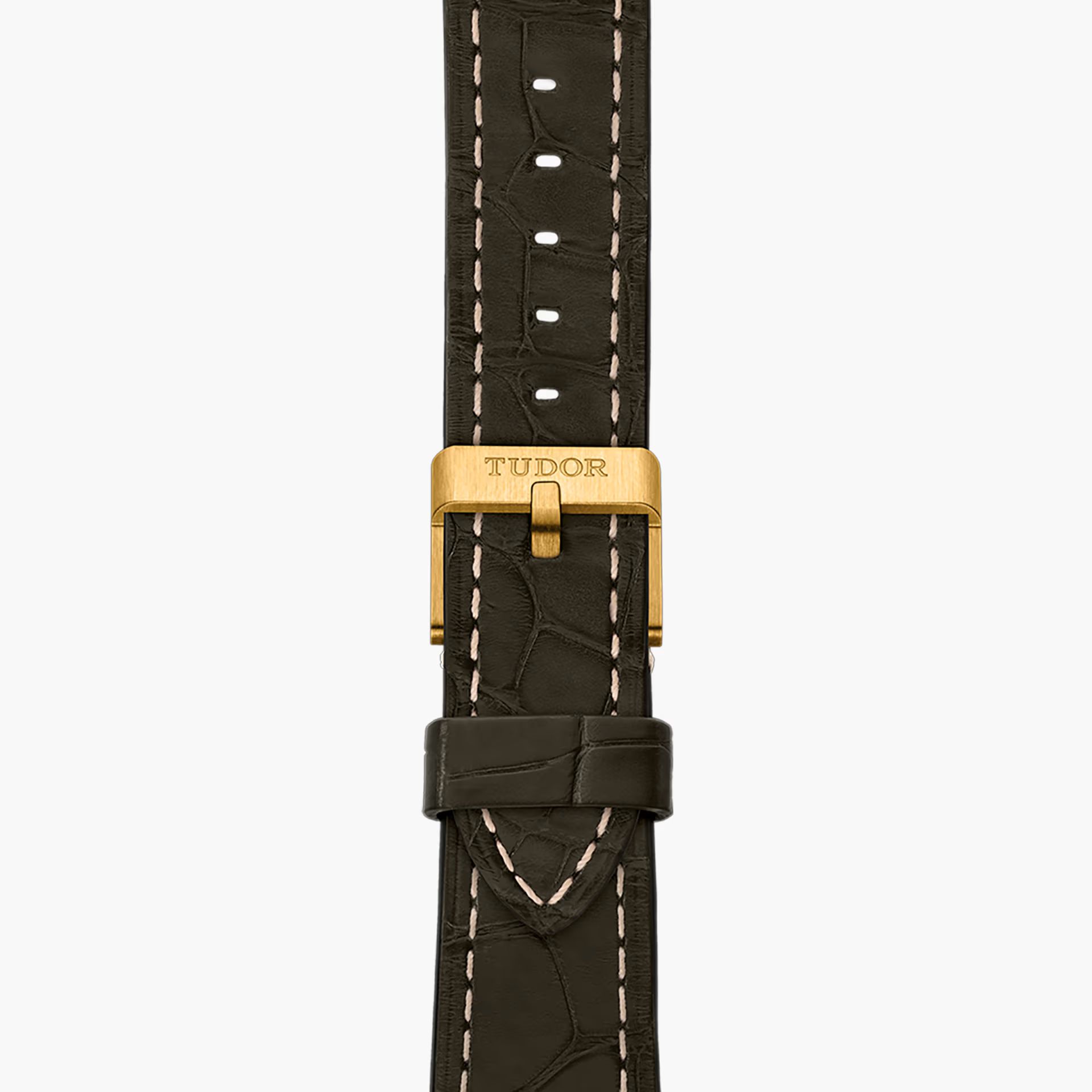 Opwinden: Automatisch 18 kt geelgouden geschroefde kroon met de TUDOR-roos in reliëf en circulair satijngeborstelde 18 kt geelgouden kroonbuis