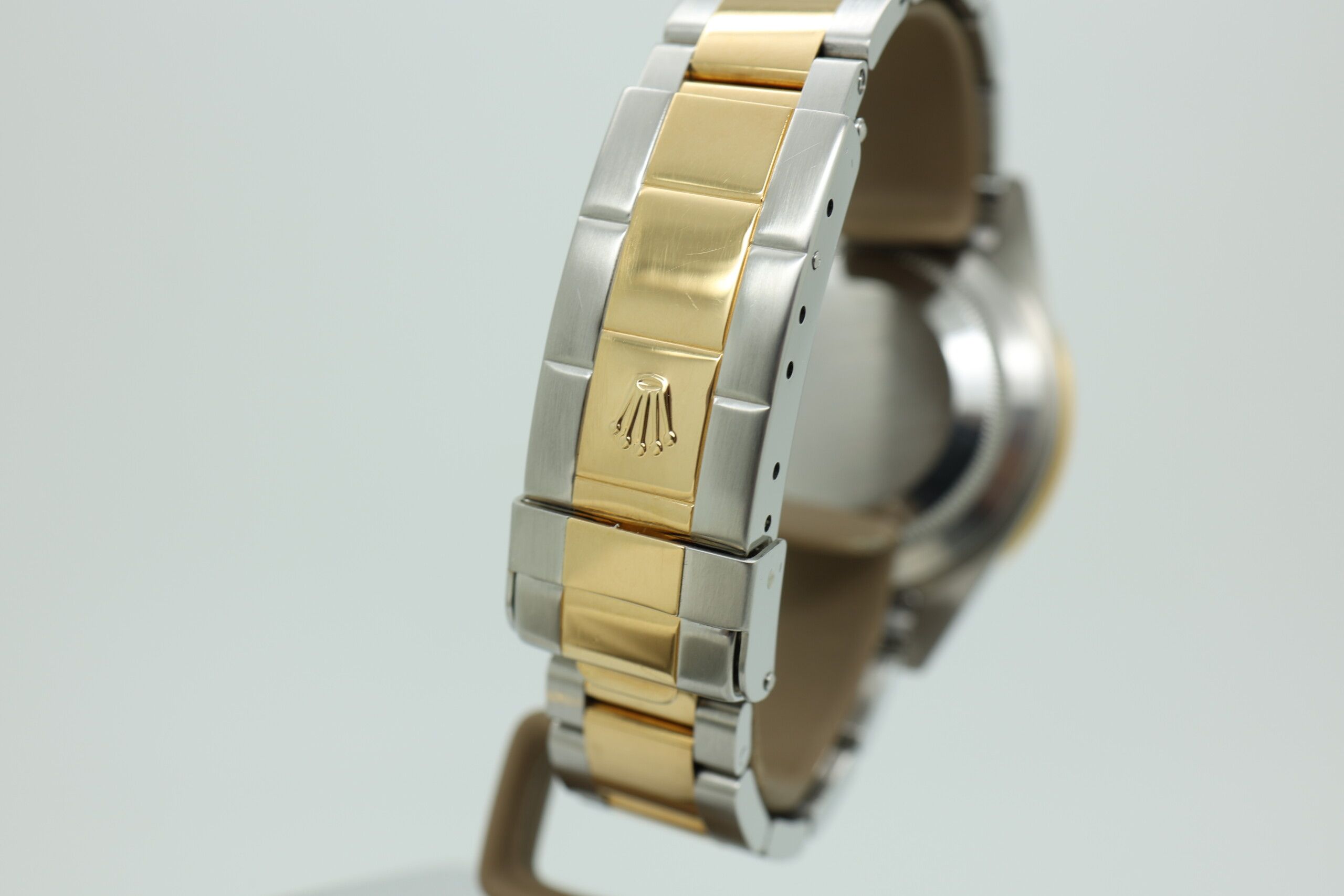 - Signos leves de uso como microarañazos o pequeños arañazos superficiales. La caja, el bisel y el brazalete conservan sus aristas definidas y su forma general. Puede haber sido pulido profesionalmente sin afectar a las líneas originales. Totalmente funcional mecánicamente.