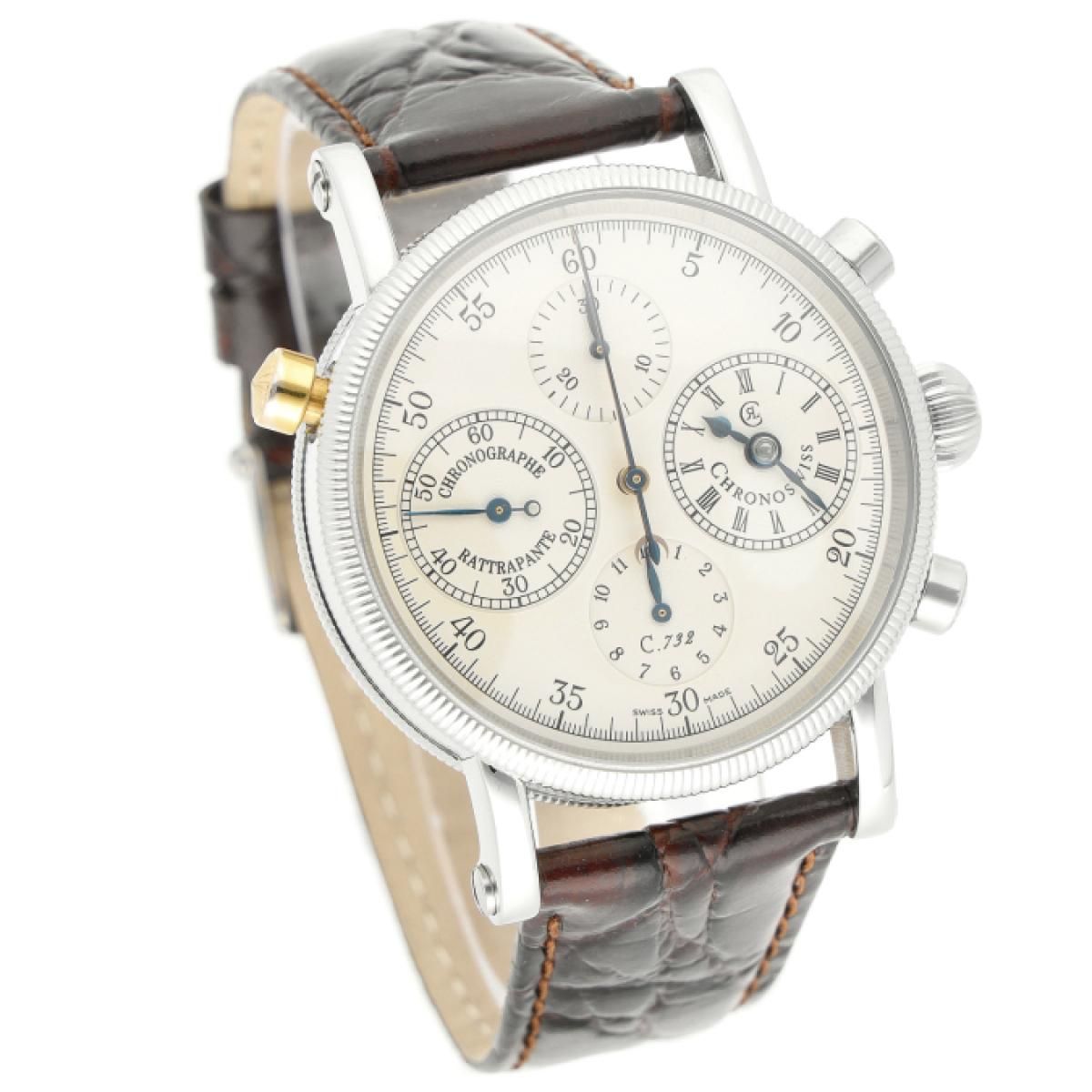 Chronoswiss Rattrapante de 1995 con caja de acero inoxidable de 38 mm y hebilla de pasador. El reloj Chronoswiss de caballero está en muy buen estado.