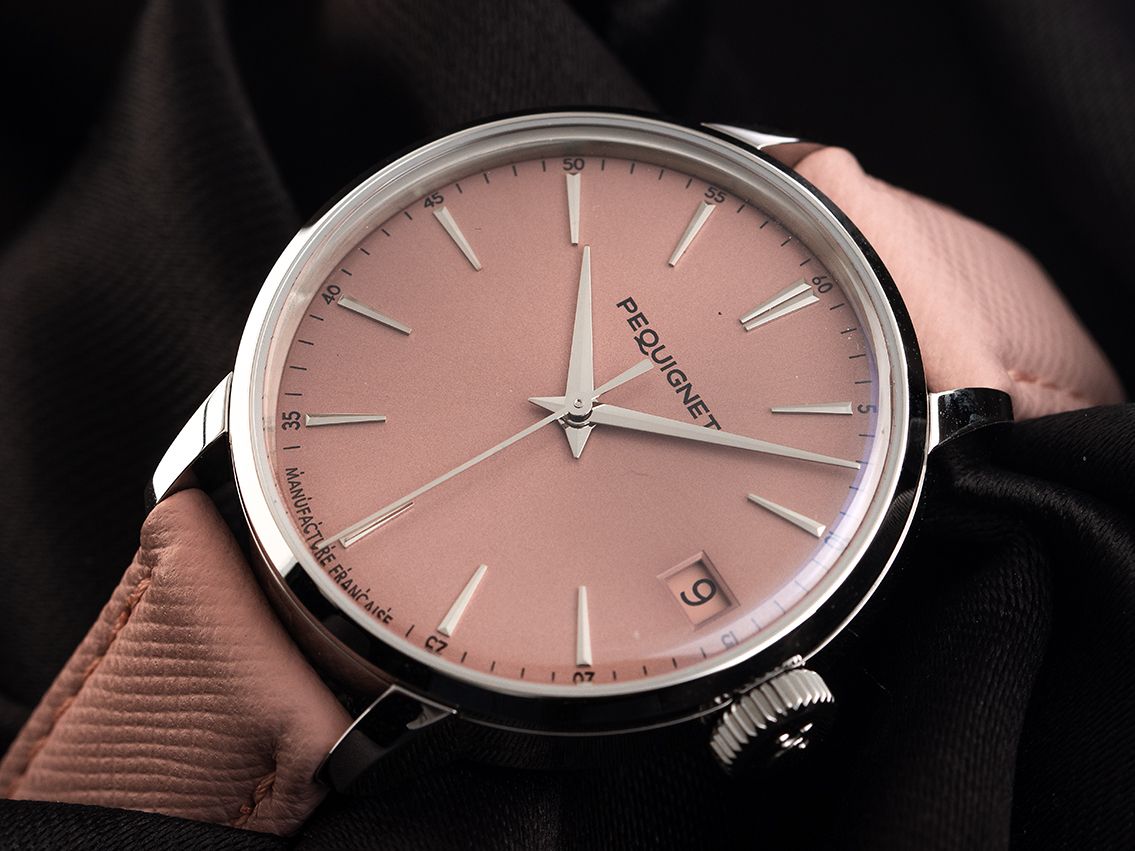 Pequignet Attitude Festival Pink Stahl Automatik Armband Leder