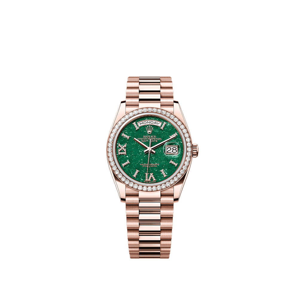 Rolex 128345RBR-0068 Day-Date 36 Everose Gold - Diamond / Green Aventurine / President