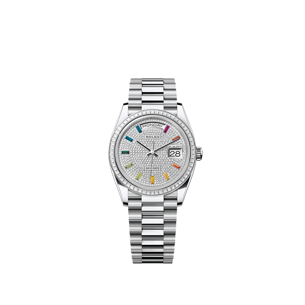 Rolex 128396TBR-0006 Day-Date 36 Platino - Diamante / Pavé - Arco Iris / President