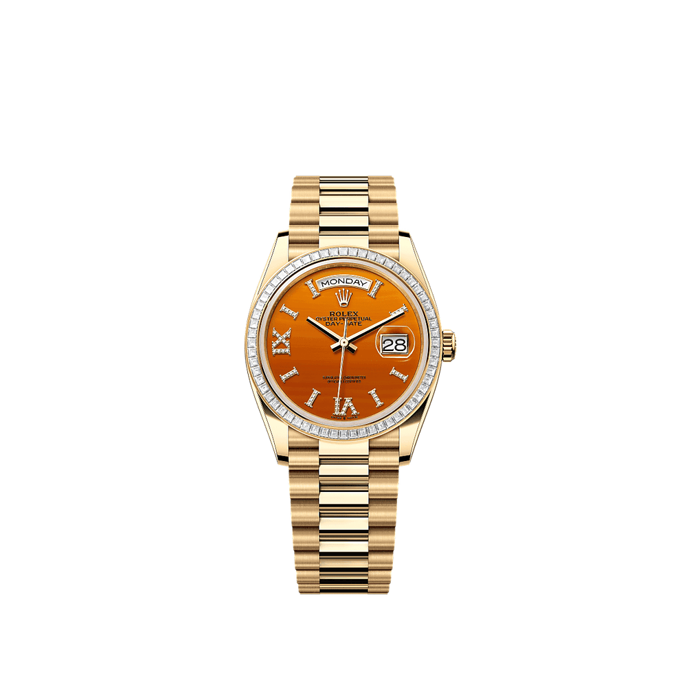Rolex 128398TBR-0018 - Day-Date 36 Yellow Gold - Baguette / Carnelian / President