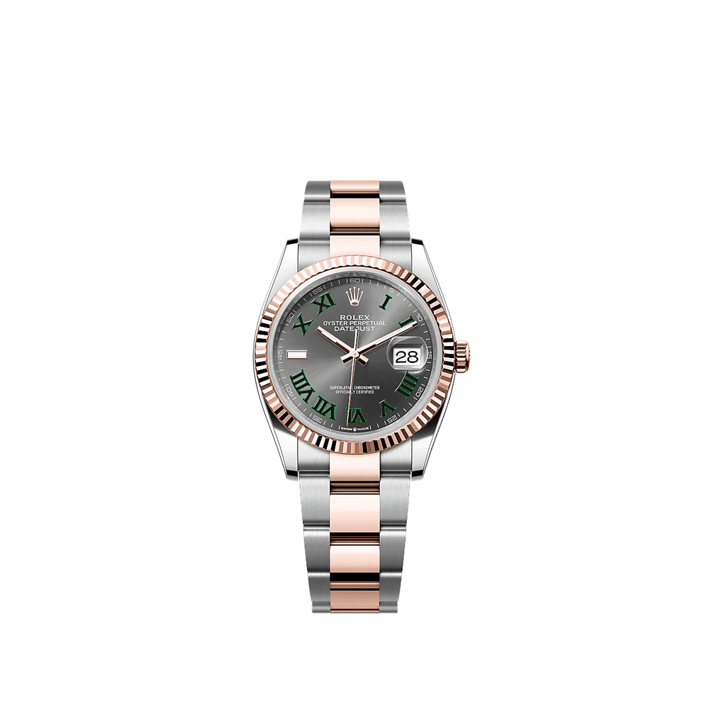 Rolex 126231-0030 (Wimbledon) Datejust 36 Acero inoxidable / Everose / Estriado / Pizarra - Roman / Oyster