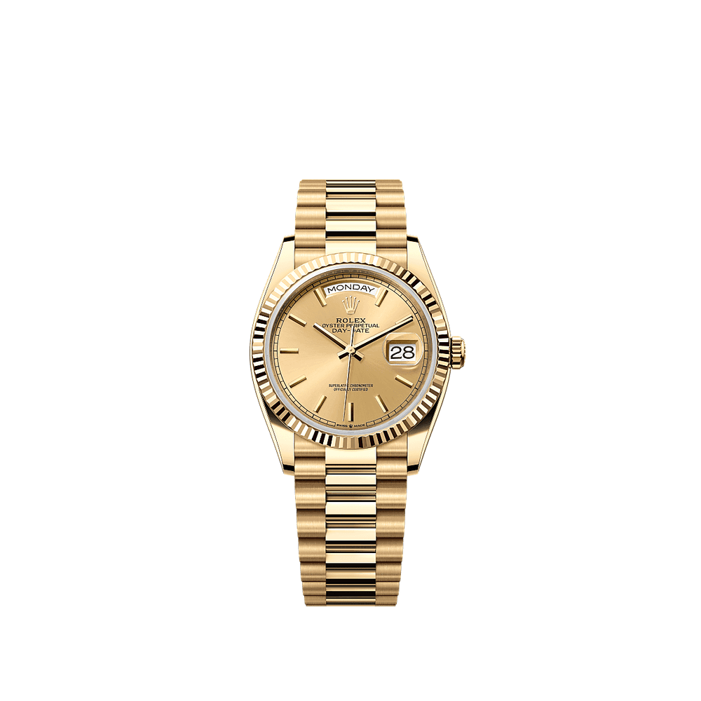 Rolex 128238-0045 Day-Date 36 Yellow Gold / Fluted / Champagne / President