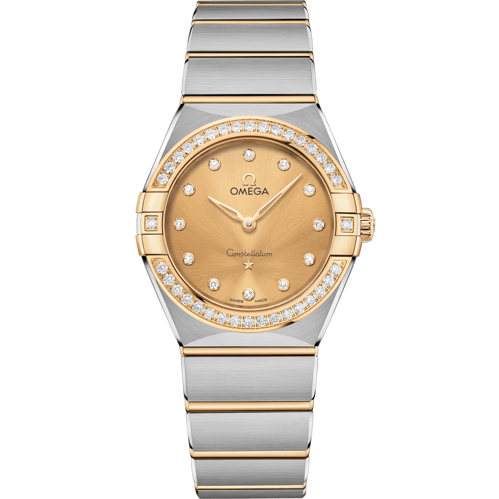 Omega 131.25.28.60.58.001 Constellation Manhattan 28 Cuarzo Acero inoxidable / Oro amarillo / Champán-Diamante / Diamante