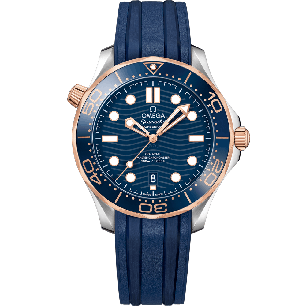 Omega Seamaster Diver 300 M Omega 210.22.42.20.03.002 Seamaster Diver 300M Master Co-Axial 42 Stainless Steel / Sedna Gold / Blue / Rubber