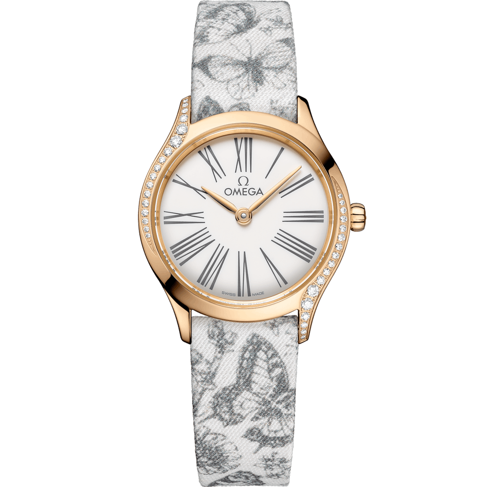 Omega De Ville Trésor Omega 428.57.26.60.04.002 Mini Tr̩sor Quartz 26 Moonshine Gold - Diamond / White - Grey / Toile de Jouy
