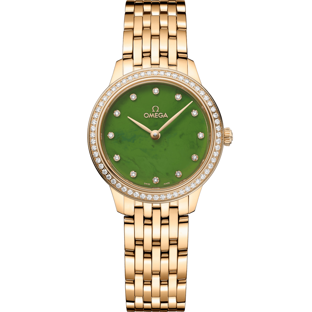 Omega 434.55.28.60.99.001 De Ville Quartz 27.5 Yellow Gold - Diamond / Jade - Diamond / Bracelet