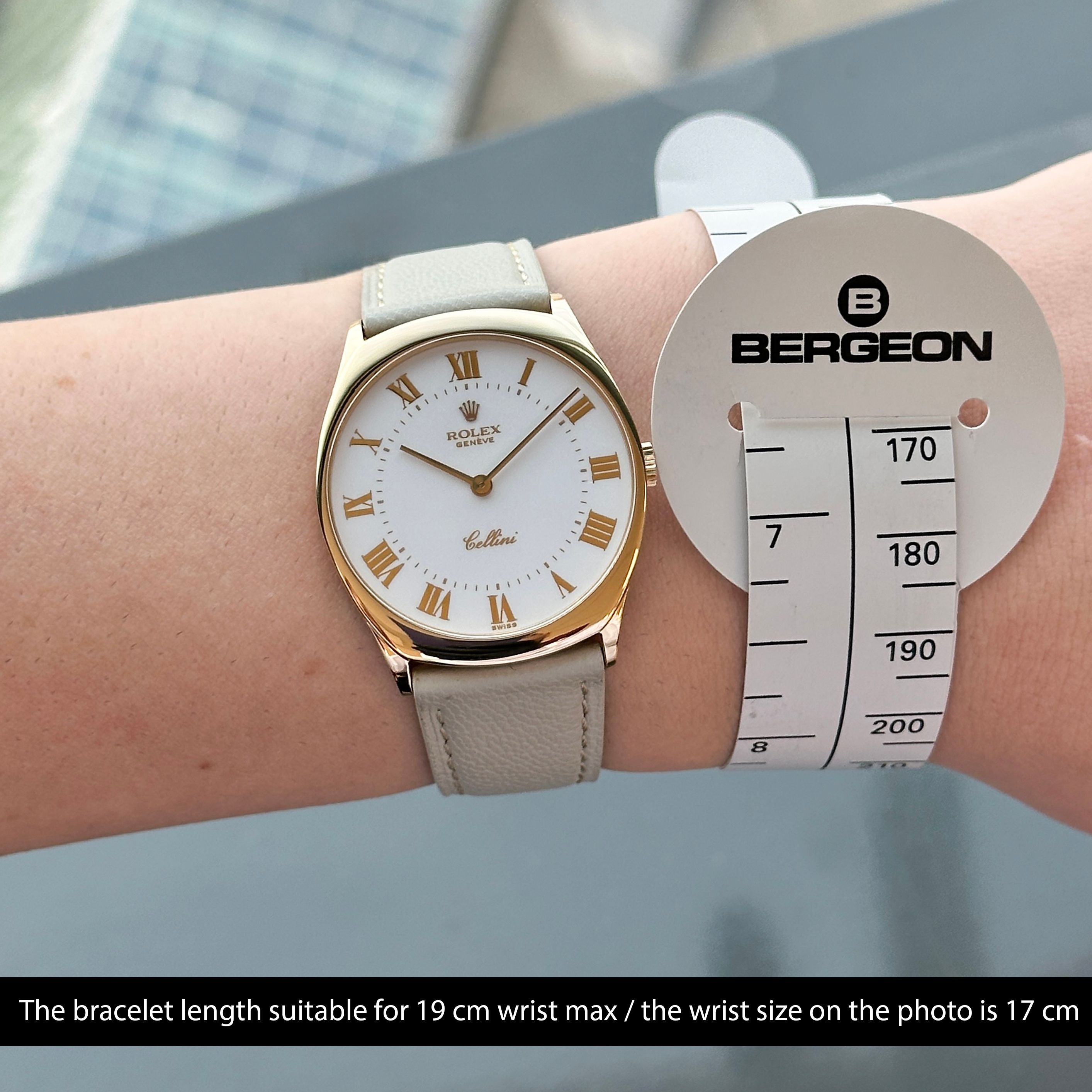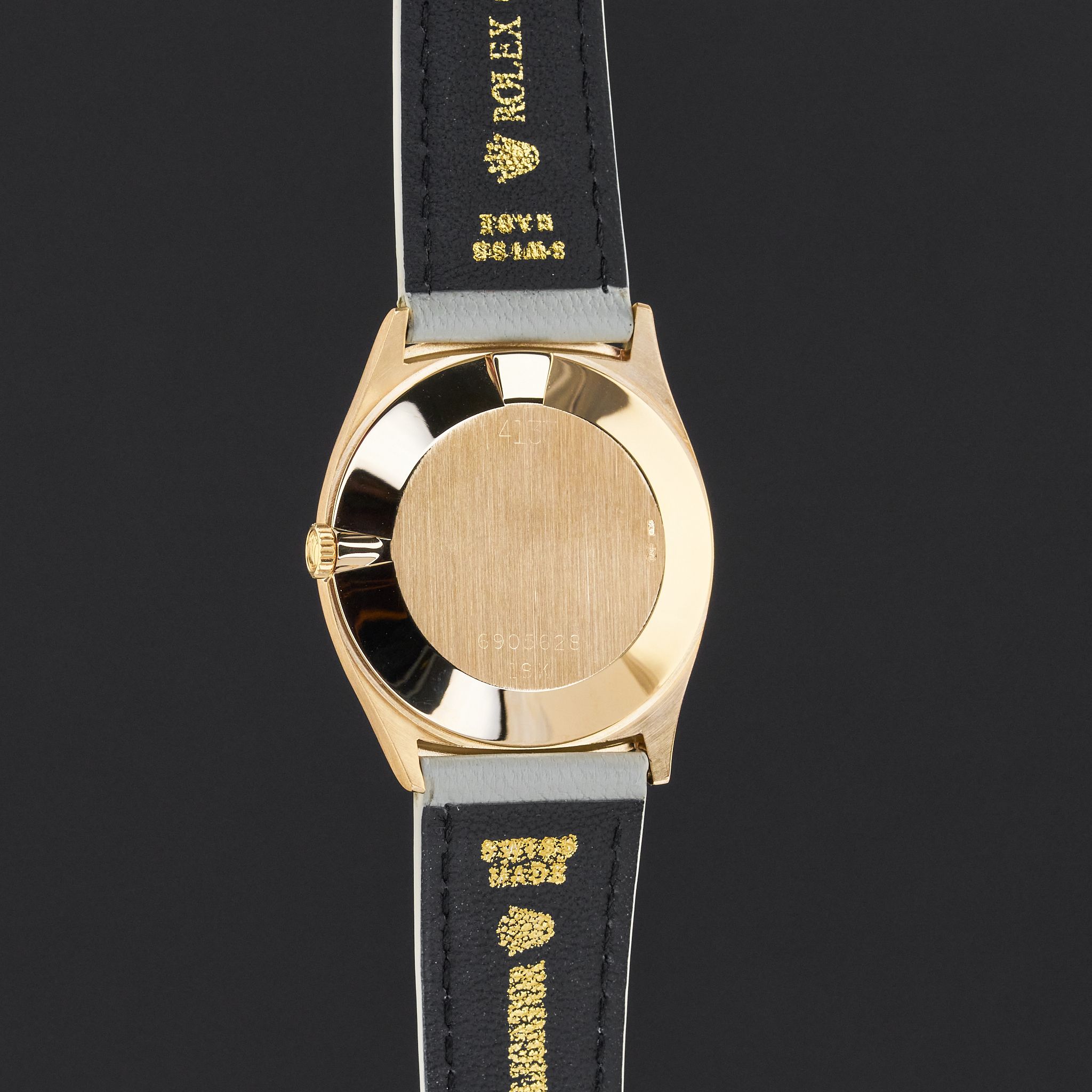 Rolex Cellini 4133 – Pure EleganceThis particular Rolex Cellini introduced in 1981, is a graceful tribute to traditional watchmaking, presented in a clean and minimalist form. It's white dial, framed by classic Roman numerals, reflects timeless refinement, while the slim profile and understated design emphasize balance and sophistication.Created for those who value quiet elegance, classical proportions, and the lasting appeal of simplicity – a refined statement from the heart of the Cellini collection.This Rolex Cellini 4133 features a White roman dial dial and is crafted from 18K yellow gold, with a production year of 1981.Case No: 690XXXX