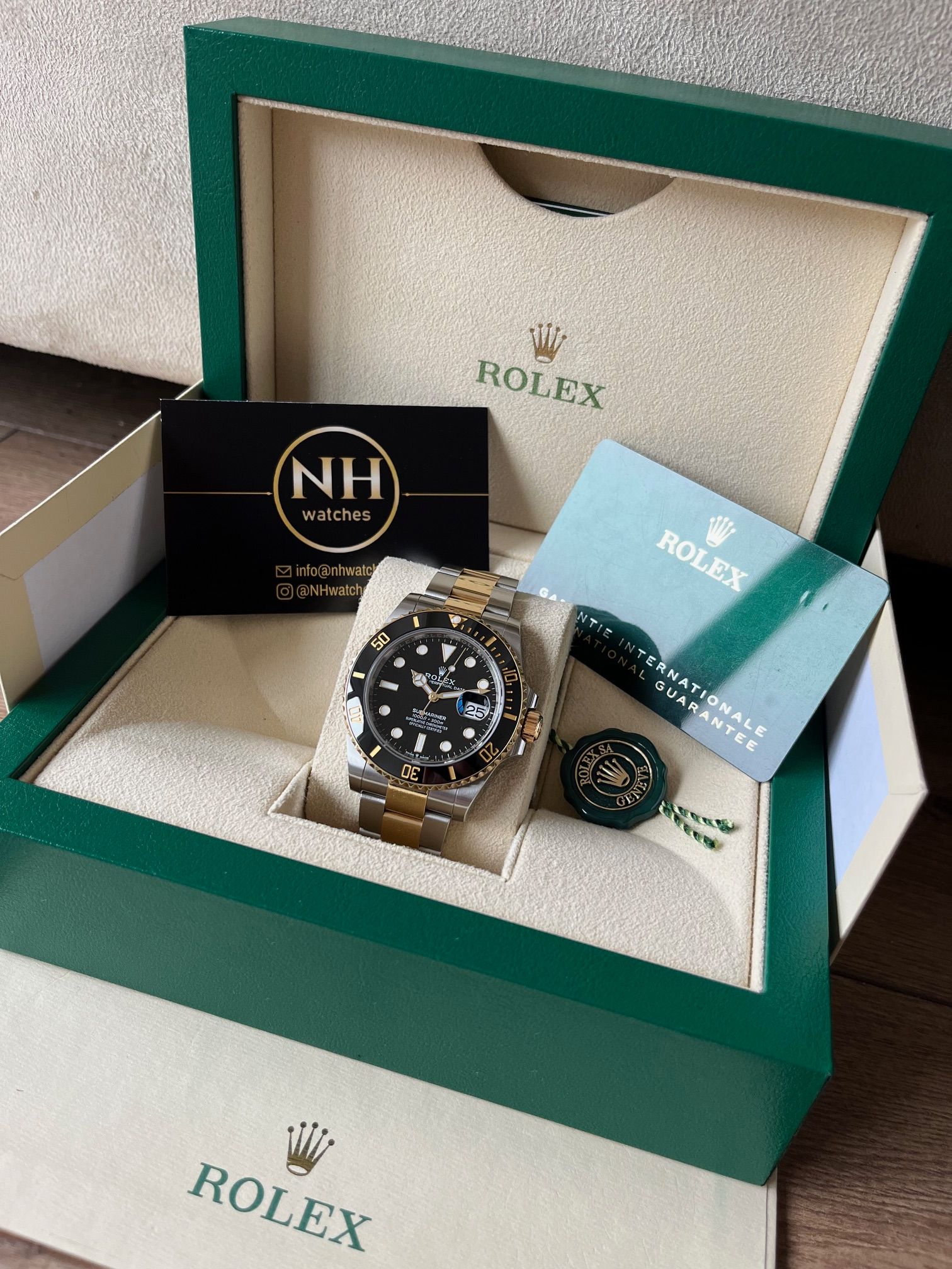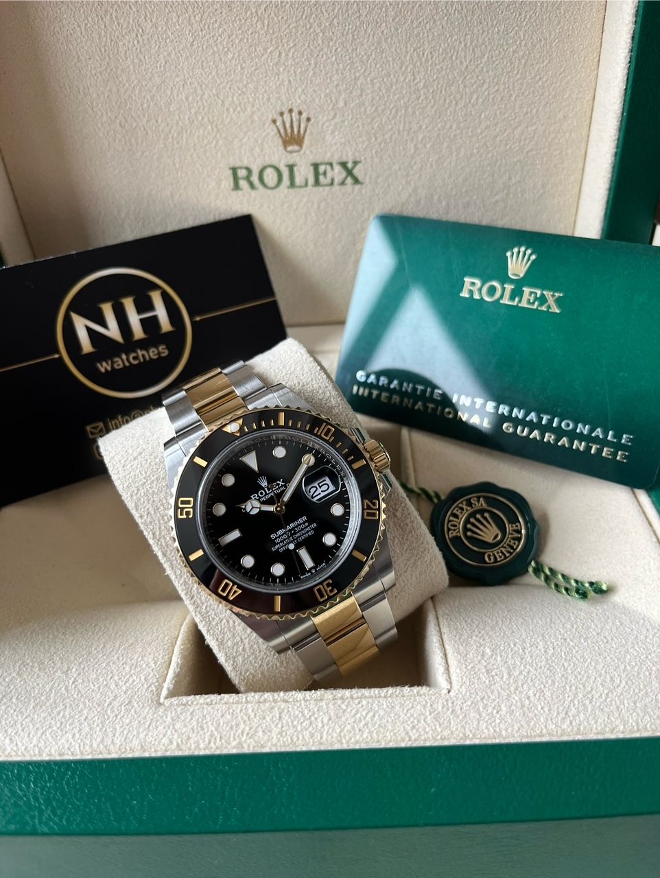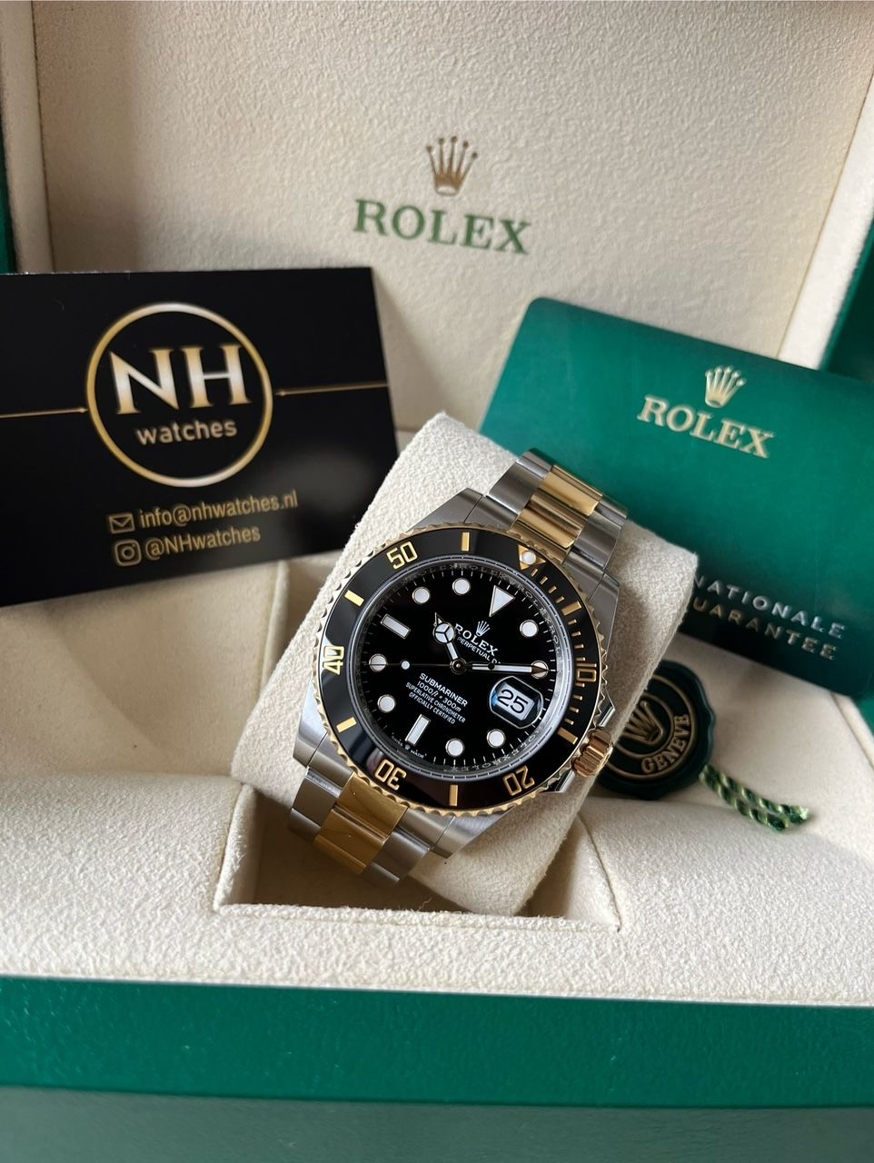 The great Rolex Submariner two-tone with the black dial. A stunning piece. Fullset from 09/2022.I am not shipping out watches, only available at the Wristler HQ or the NHwatches office.