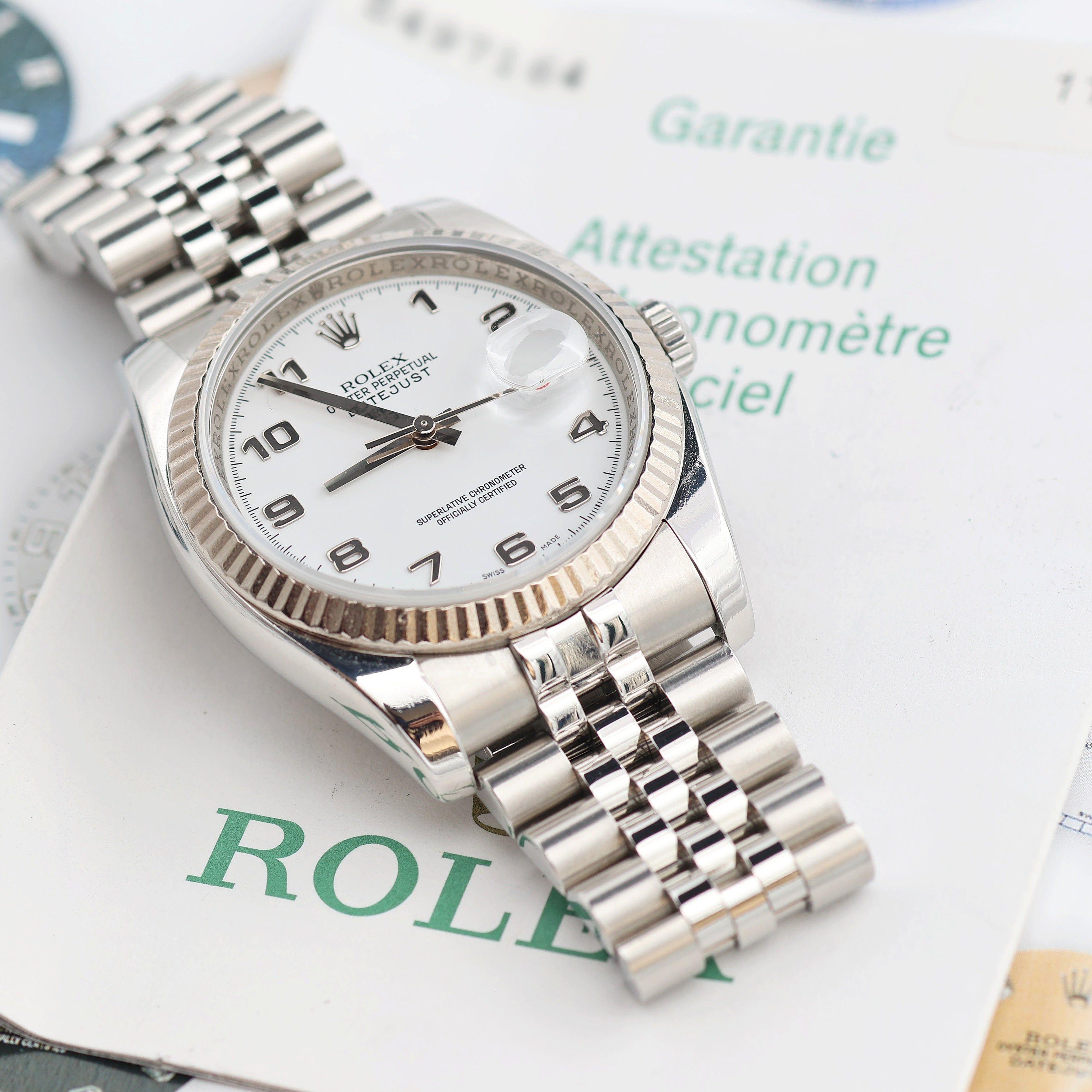 Rolex Datejust ref. 116234 White Arabic Dial - Jubilee - Full Set