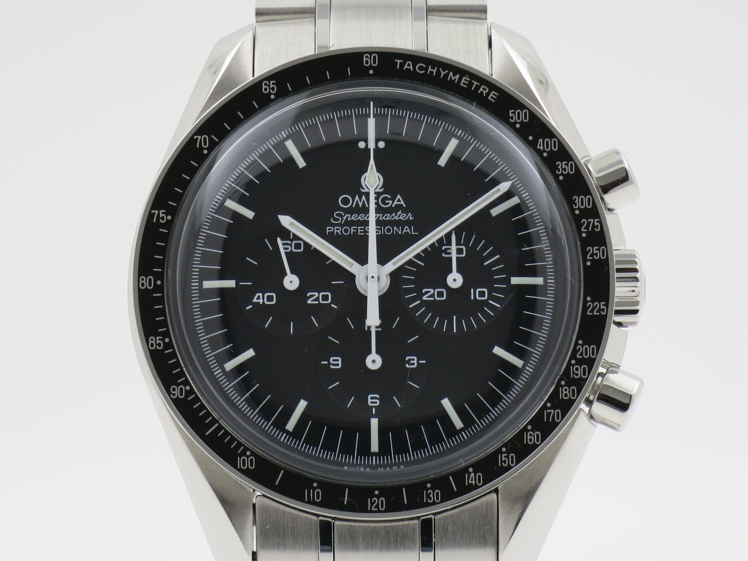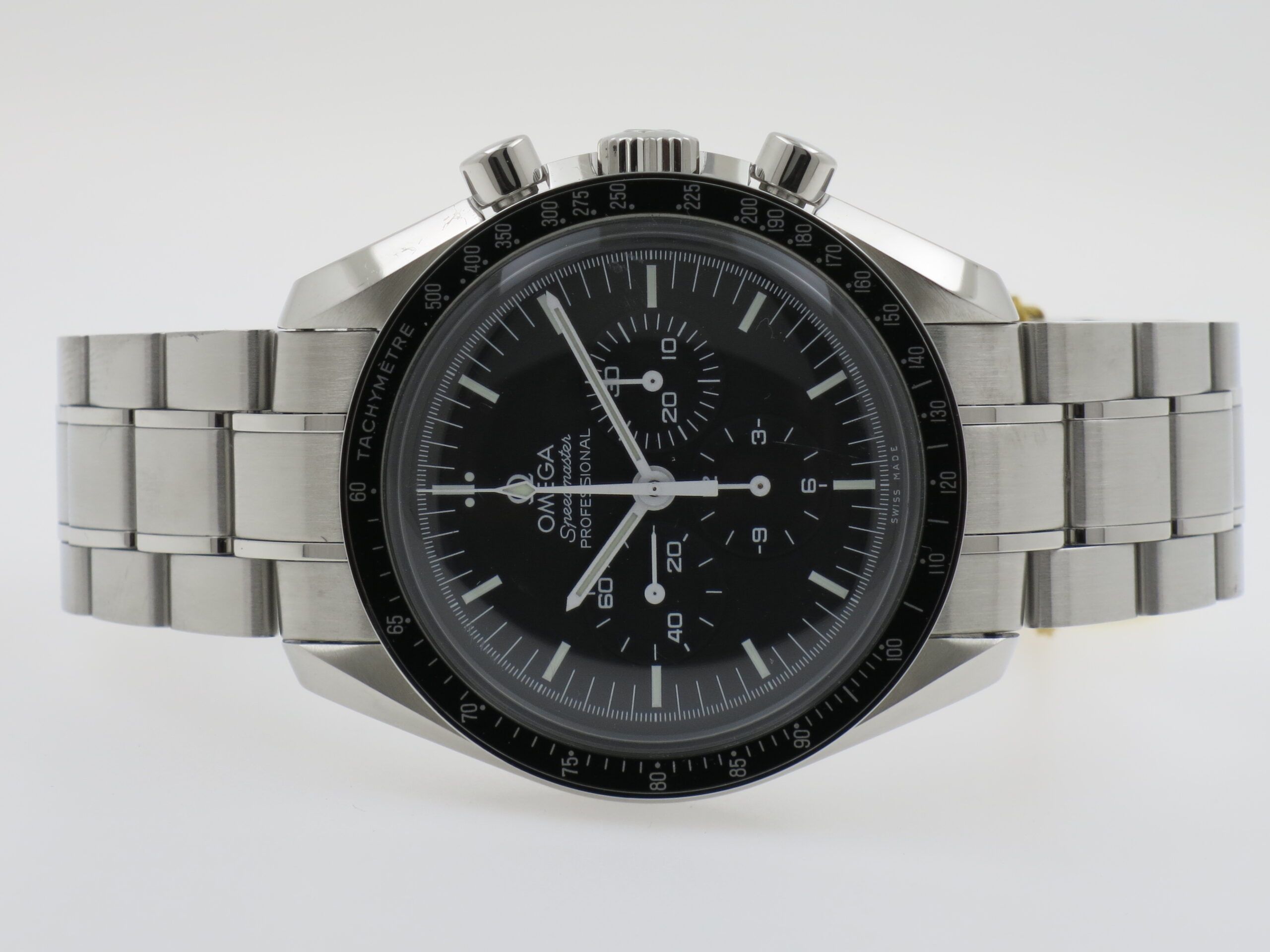 Omega Speedmaster Professional Moonwatch the first watch worn on the moon. Beautiful black dial in a 42 mm steel case with steel bezel. Shipping immediately upon receipt of payment. Our photos are NOT edited! What you see is what you get. Shipped registered and insured with Fedex Priority.