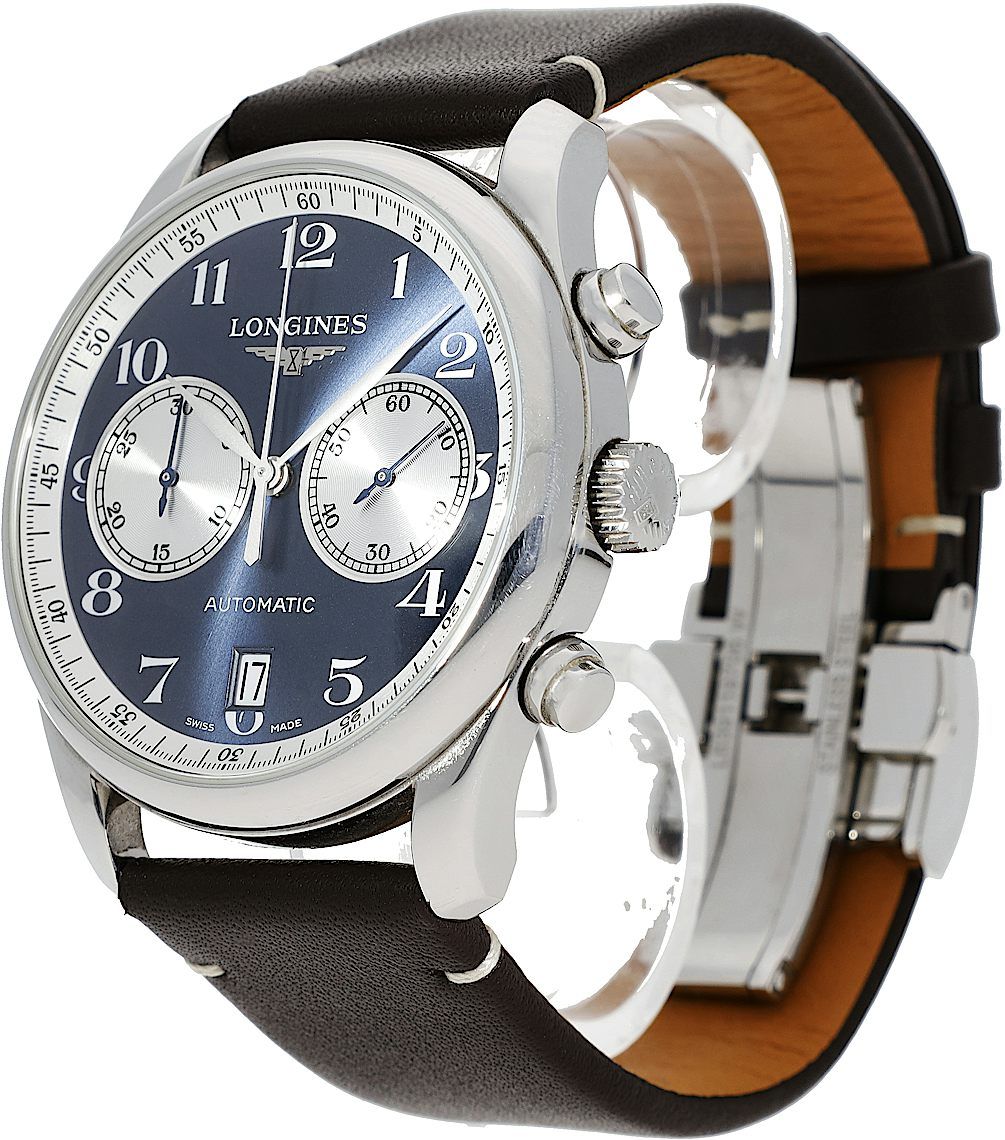 Longines Master Bucherer Blue, Reference: L2.629.4.99.2, Gender: Male, Size: 40mm, Dial color: Strap material: Calf Leather, Movement: Automatic, Year: 2022, Condition: Previously worn, minor to no signs of usage. The movement is flawless and the case has been cleaned. watch tested ensure full functionality. An inspection by our certified watchmakers guarantees its authenticity., Documents: Original papers, CHRONEXT Certificate