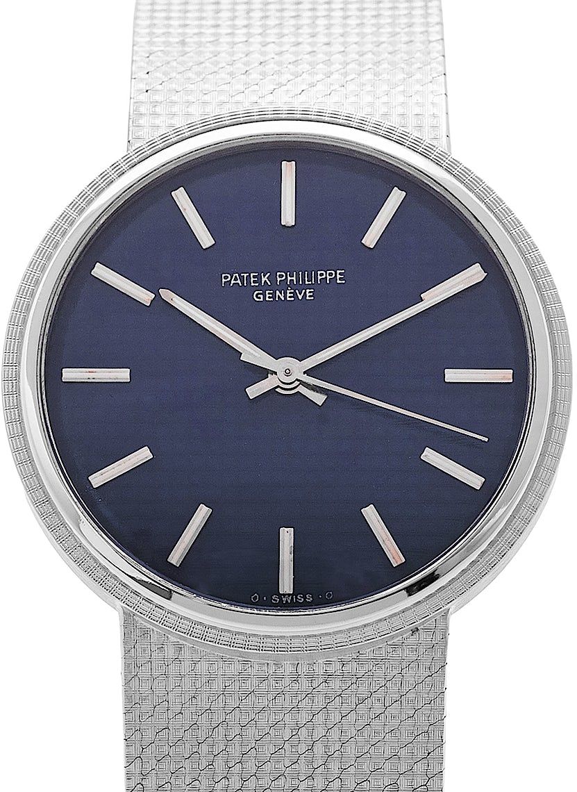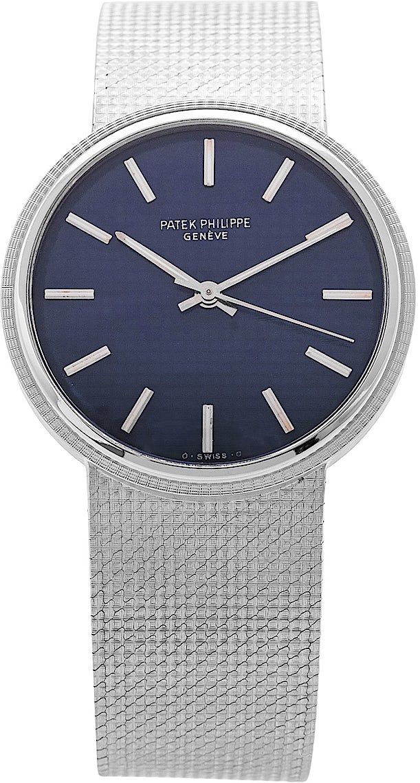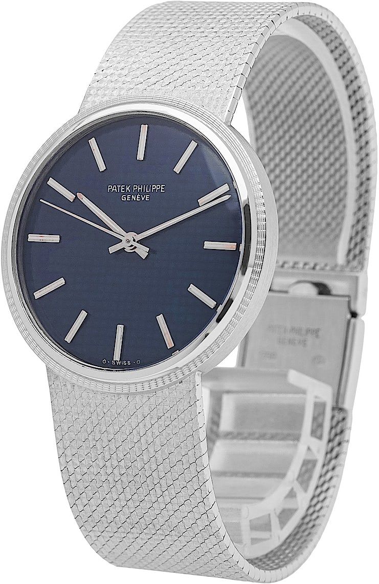 Patek Philippe Calatrava, Reference: 3563/3, Gender: Female, Size: 34mm, Dial color: Blue, Strap material: White Gold, Movement: Automatic, Year: 1981, Condition: Previously worn with some signs of usage. The movement is flawless and the case has been cleaned. watch tested to ensure full functionality. An inspection by our certified watchmakers guarantees its authenticity., Documents: Chronext Certificate