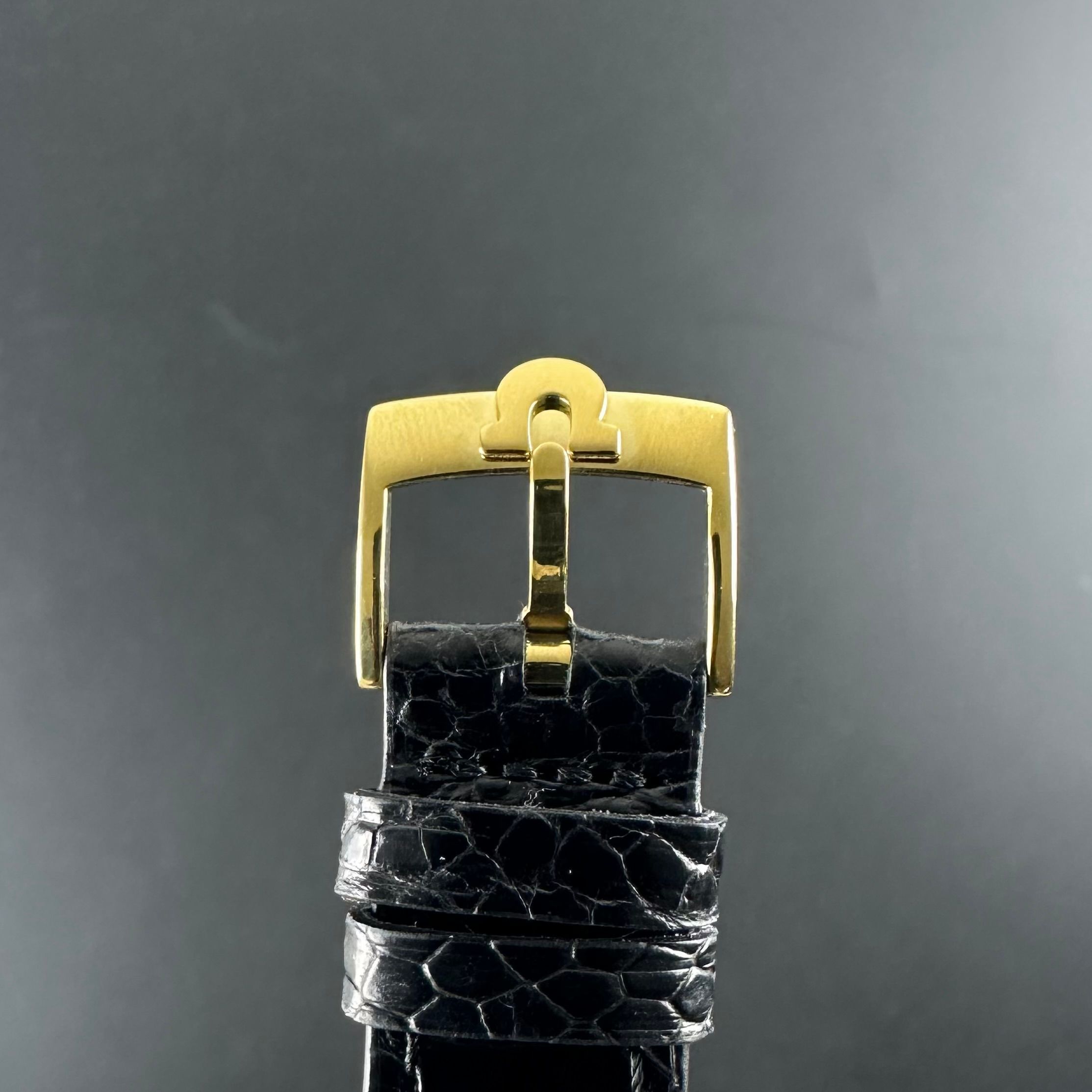 Strap: A black grade III calf leather strap with crocodile grain and light glossy finish. (Fits a 12 to 20cm wrist)