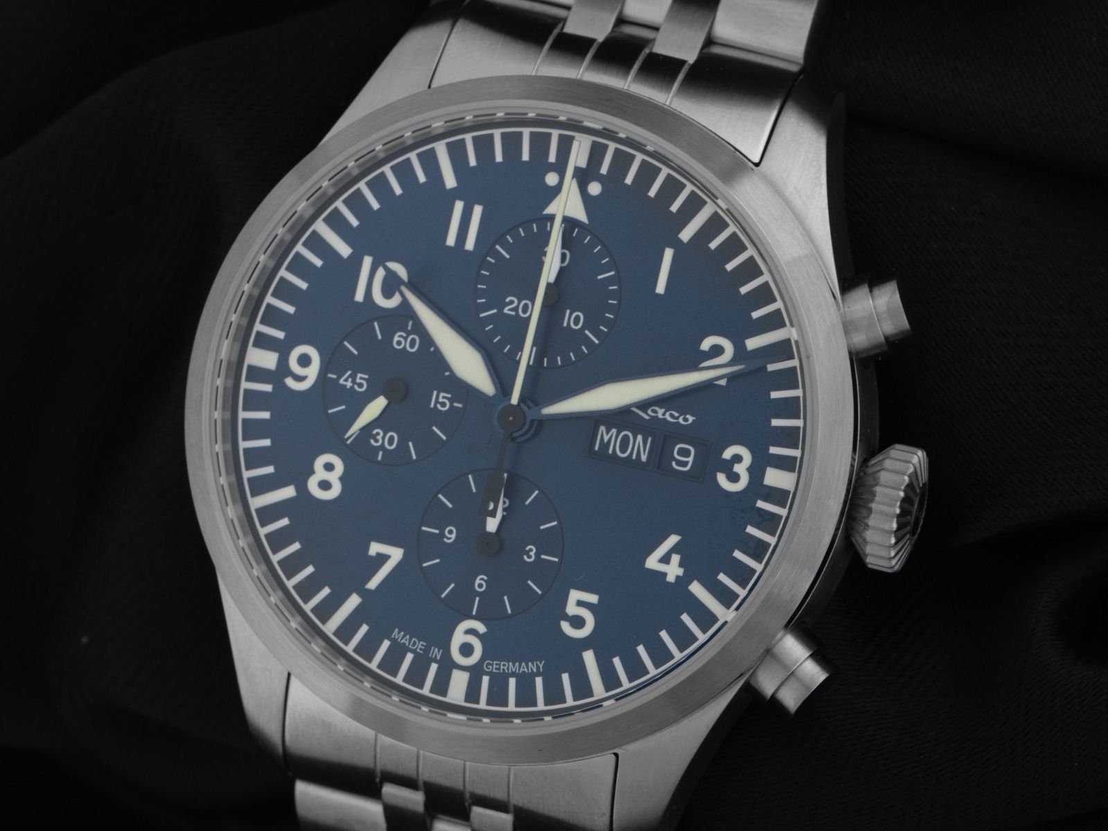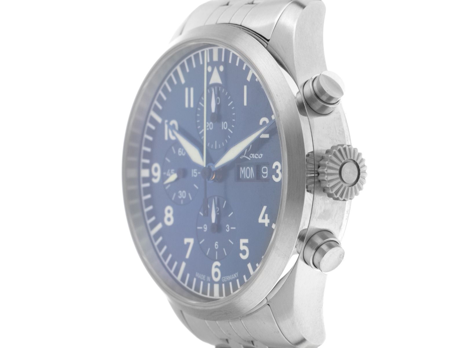 Laco Kiel.2 Blau Stahl Automatik Chronograph Armband Stahl