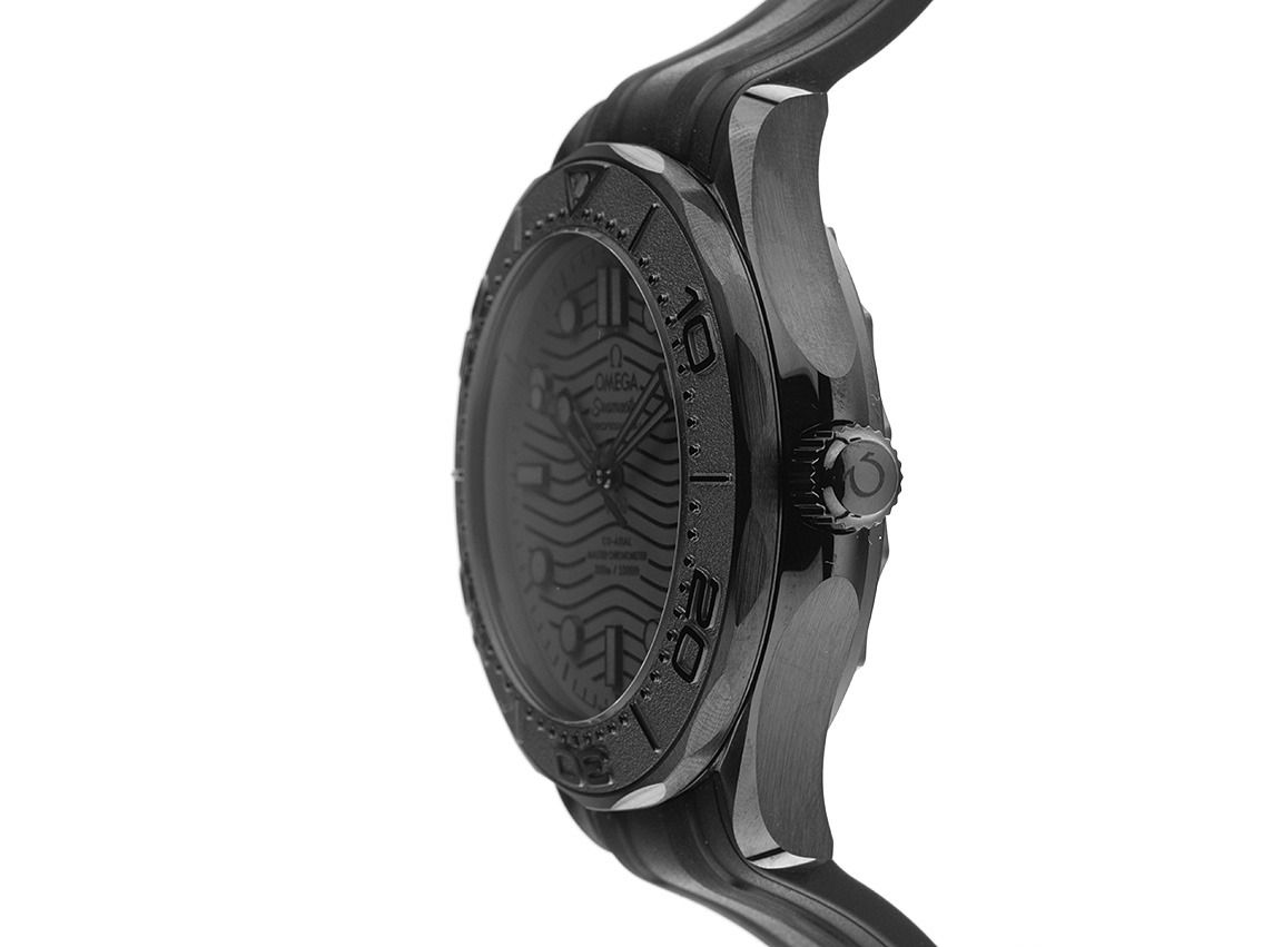 Gehäuse Keramik schwarz poliert und satiniert, Gehäusedurchmesser ohne Krone 43,5mm, Gehäusehöhe 14,5mm. Lünette Keramik schwarz mit 60-Minuten Skala und Leuchtpunkt, einseitig drehbar. Helioventil bei 10 Uhr. Armband Kautschuk schwarz, Anstoßbreite 21mm, Stiftschließe Keramik schwarz mit Hersteller-Logo. Zifferblatt schwarz mit Wellendekor, aufgesetzten Leuchtindexen und Leuchtpunkten sowie skelettierten schwarzen Leuchtzeigern. Reloj automático, Master Chronometer con fecha, Omega Manufakturkaliber 8806 con 35 agujas, Hemmung Co-Axial, Gangreserve ca. 55 horas. Anzeige von Stunde, Minute und Sekunde über Zeiger aus der Mitte mit Sekundenstopp zur sekundengenauen Einstellung der Uhrzeit. Saphirglas gewölbt und kratzfest, doppelseitig entspiegelt. Cuerpo revestido con protección de flancos y logotipo del fabricante. Cuerpo de cerámica recubierto y pintado con cristal de zafiro. Gewicht der Uhr inklusive Armband 114g. Consumo de agua hasta 30 ATM. Número de referencia: 210.92.44.20.01.003, ID: ST1160146230125H-10300, Artikelnummer: 10000078256. Caja original Omega con caja de cartón y papel de garantía de diciembre de 2024, así como descripción, juego completo. Ungetragen. Entrega inmediata.