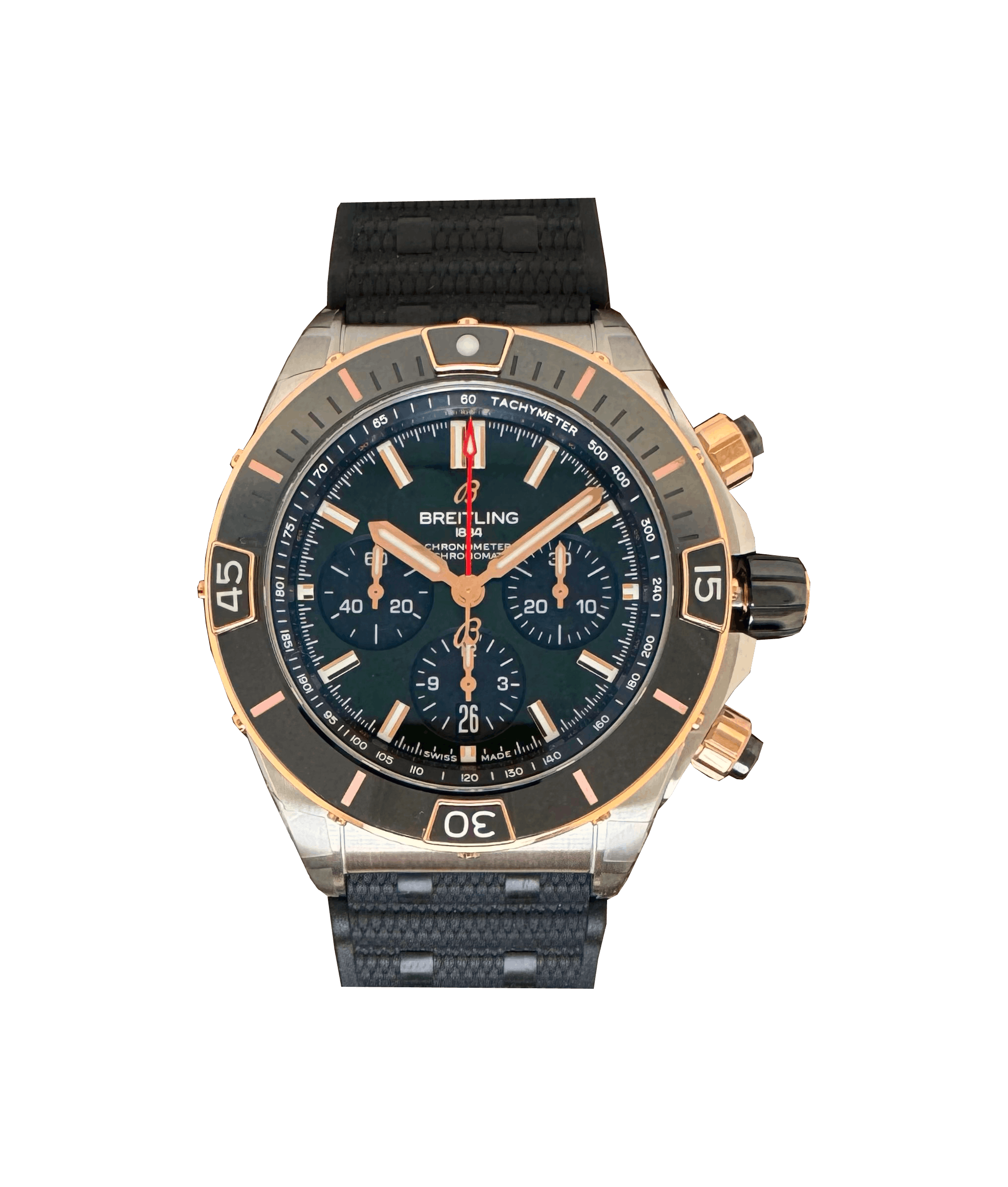 Breitling UB0136251L1S1 Super Chronomat B01 44 Stainless Steel - Red Gold / Green / Rubber Rouleaux