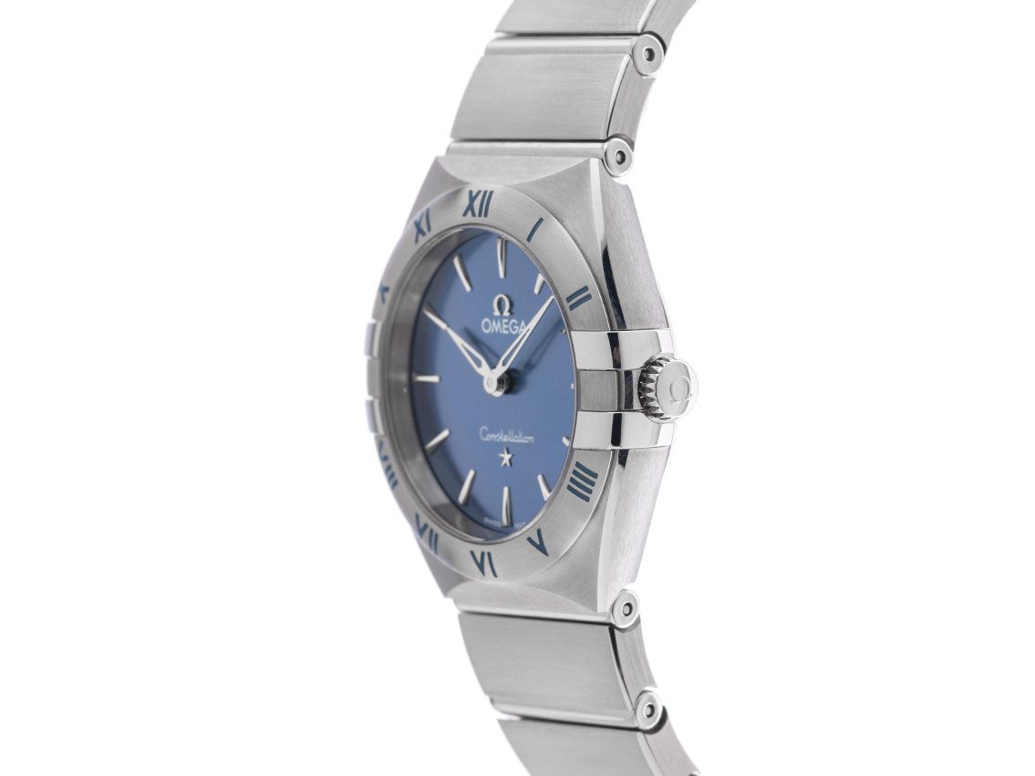 Omega Constellation Stahl Quarz Armband StahlGehäuse Edelstahl poliert und satiniert, Gehäusedurchmesser ohne Krone 28mm, Gehäusehöhe 8,48mm. Lünette Edelstahl mit römischer 12 Stunden Skala graviert und satiniert. Armband Edelstahl poliert und satiniert, verdeckte Doppelsicherheitsfaltschließe Edelstahl mit Hersteller-Logo. Zifferblatt blau mit aufgesetzten Edelstahl Indexen und Leuchtzeigern. Uhrwerk quarzgesteuert, Omega Manufakturkaliber 4061. Anzeige von Stunde und Minute über Zeiger aus der Mitte. Saphirglas kratzfest, gewölbt und entspiegelt. Krone mit Hersteller-Logo. Boden Edelstahl graviert. Wasserdicht bis 3 ATM. Gewicht der Uhr inklusive Armband 81g, Länge des Armbandes inklusive Gehäuse 160mm. Referenznummer: 131.10.28.60.03.001, ID: ST116049700825H-3500, Artikelnummer: 10000082119. Original Omega Box mit Umkarton und Garantie Papiere von August 2025 sowie Beschreibung, Full Set. Ungetragen. Lieferzeit sofort.