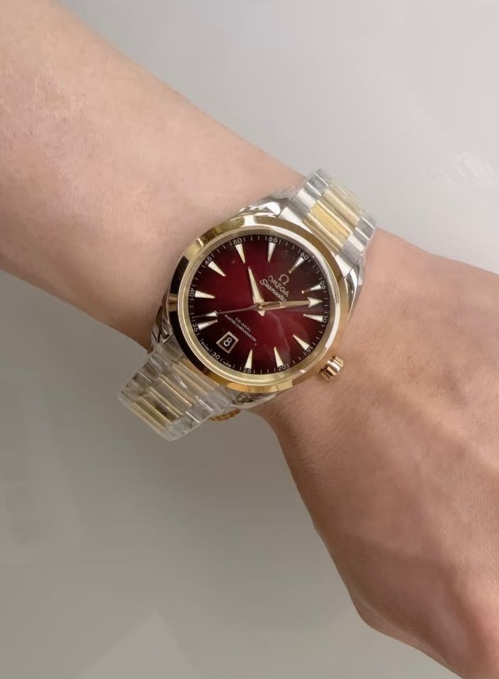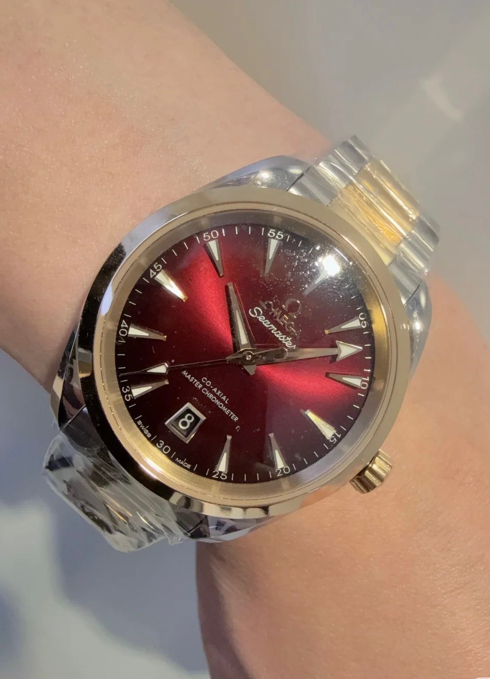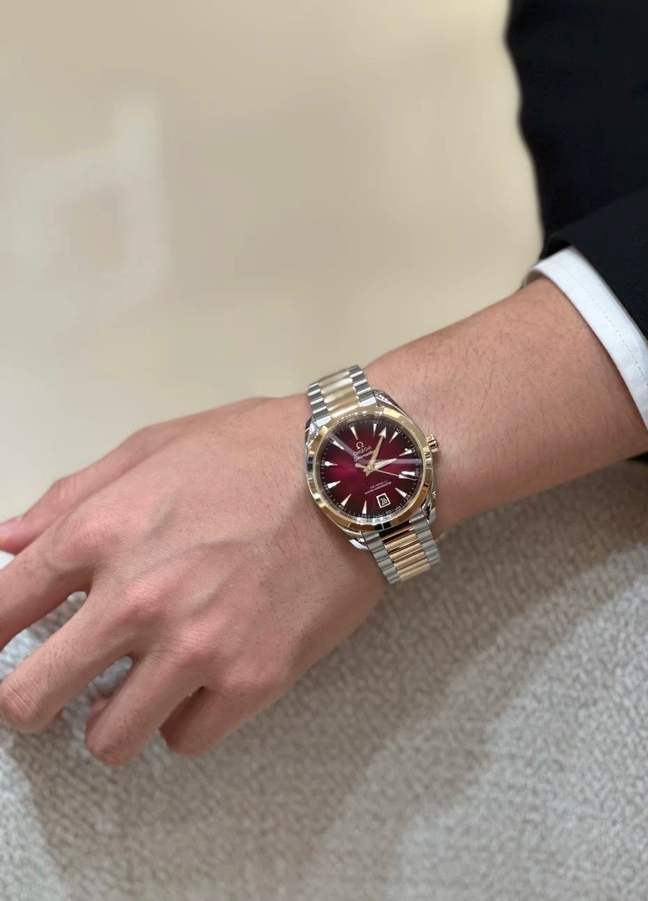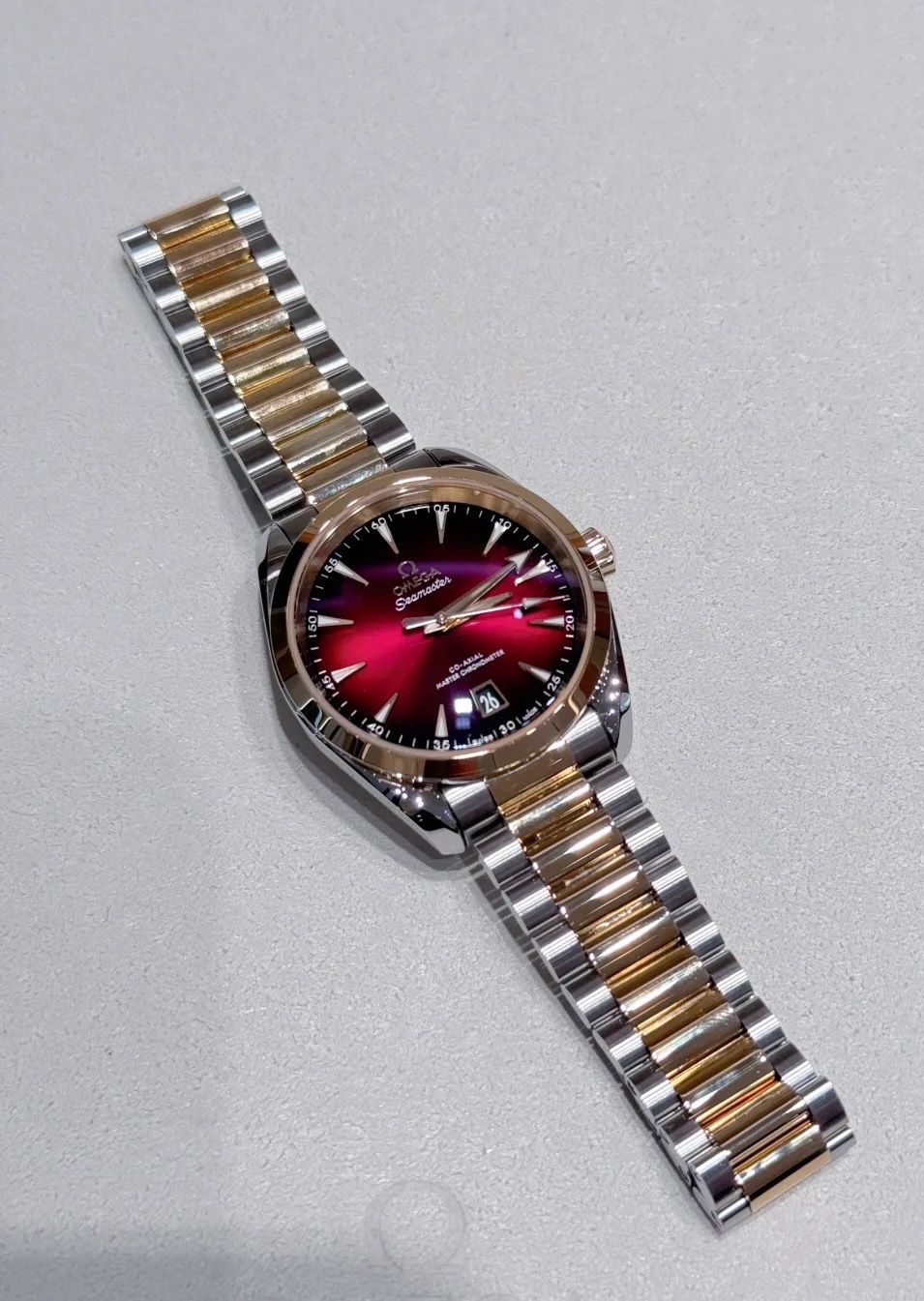 Omega 220.20.38.20.10.002 Seamaster Aqua Terra 150M Shades Master Chronometer 38 Stainless Steel - Moonshine Gold / Red / Bracelet