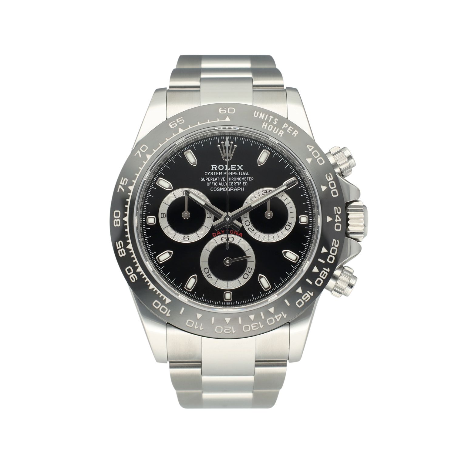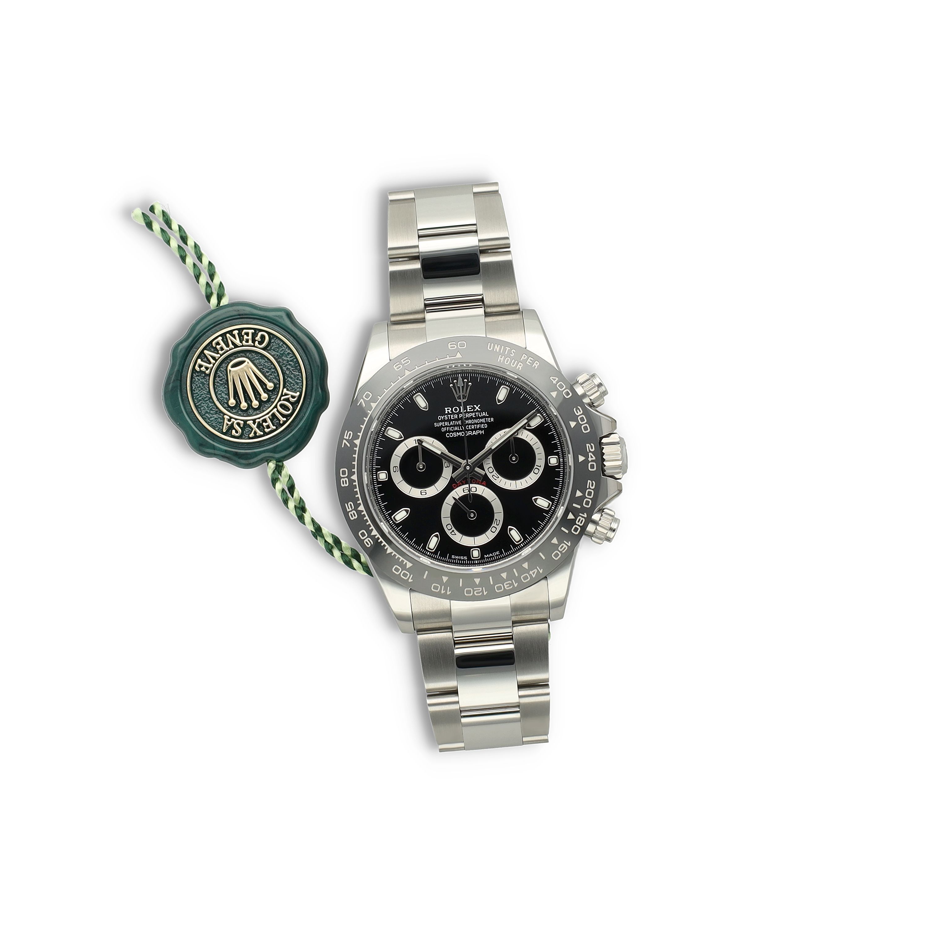 The watch is in unworn condition, making it a perfect collector's piece and a pristine example of one of Rolex’s most iconic chronographs.