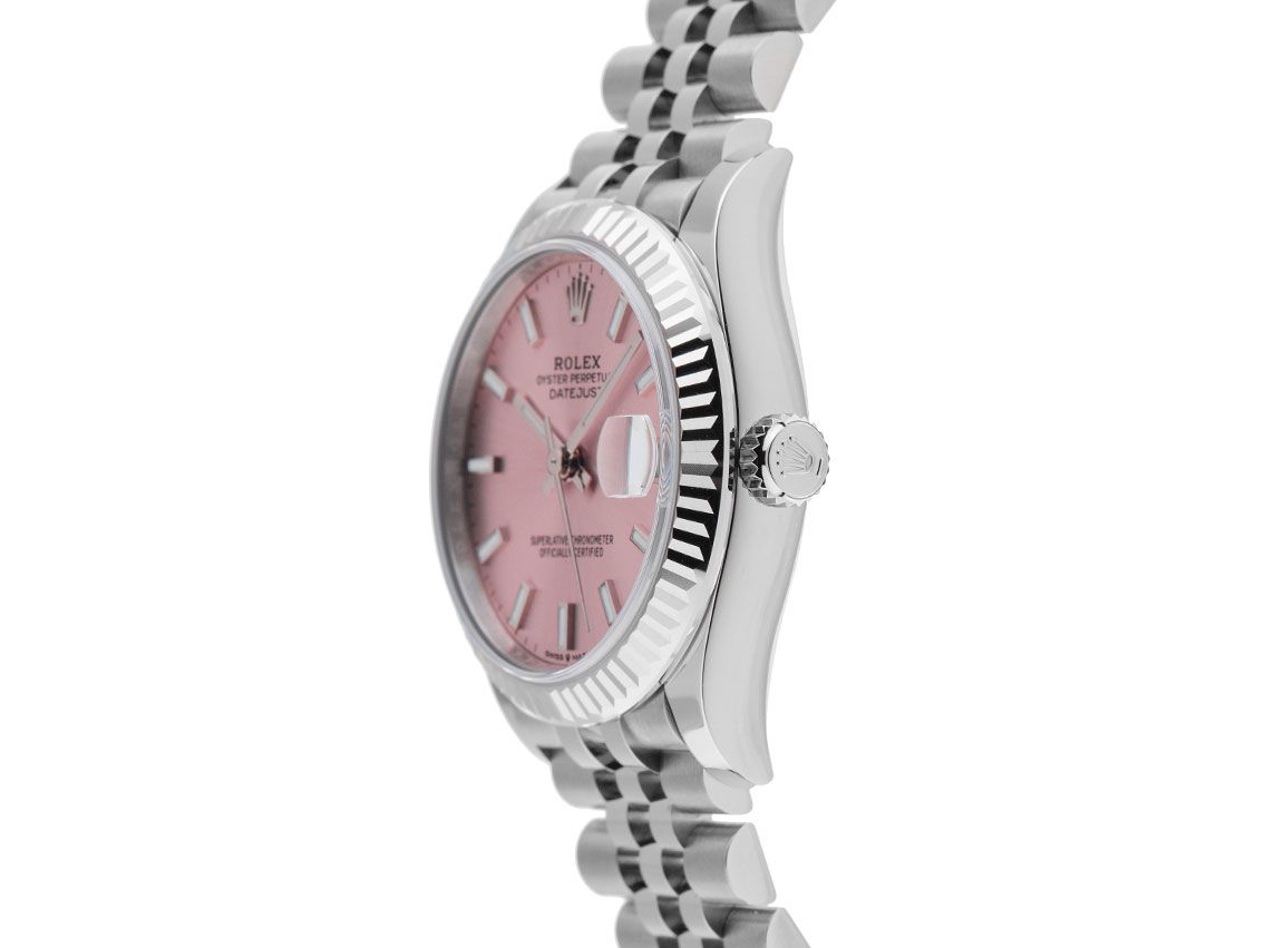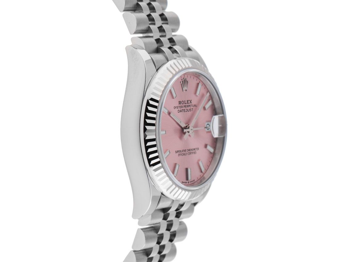 Rolex Datejust Stahl 18kt Weißgold Automatik Armband JubiléGehäuse Edelstahl poliert und satiniert, Gehäusedurchmesser ohne Krone 31mm, Gehäusehöhe 10,6mm. Lünette 18kt Weißgold geriffelt und poliert. Armband Jubilé Edelstahl poliert und satiniert, verdeckte Crownclasp-Faltschließe. Zifferblatt rosa mit aufgesetzten weißgoldenen Leuchtindexen und weißgoldenen Leuchtzeigern. Uhrwerk Automatik, Chronometer mit Zeugnis, Rolex Manufakturkaliber 2236 mit 31 Edelsteinen, Gangreserve ca. 55 Stunden. Anzeige von Stunde, Minute und Sekunde über Zeiger aus der Mitte mit Sekundenstopp zur sekundengenauen Einstellung der Uhrzeit, Datumsanzeige mit Schnellverstellung unter Glaslupe bei 3 Uhr. Saphirglas kratzfest. Krone verschraubbar mit Hersteller-Logo. Boden Edelstahl verschraubt. Gewicht der Uhr inklusive Armband 82g, Länge des Armbandes inklusive Gehäuse 165mm. Wasserdicht bis 10 ATM. Referenznummer: 278274, ID: P1489218000925H-14800/8950, Artikelnummer: 10000082208. Original Rolex Box mit Umkarton und Garantie Papiere von August 2025, neue Rolex Garantie Karte ohne Ländercode sowie Beschreibung, Ledermäppchen, Rolex Chronometer-Siegel und Watchregister Auszug von September 2025, The Watch Register Zertifikat / ohne Eintrag (Internationale Datenbank für verlorene oder gestohlene Uhren), Full Set. Kapitalanlage mit Wertsteigerungspotential. Ungetragen. Lieferzeit sofort.