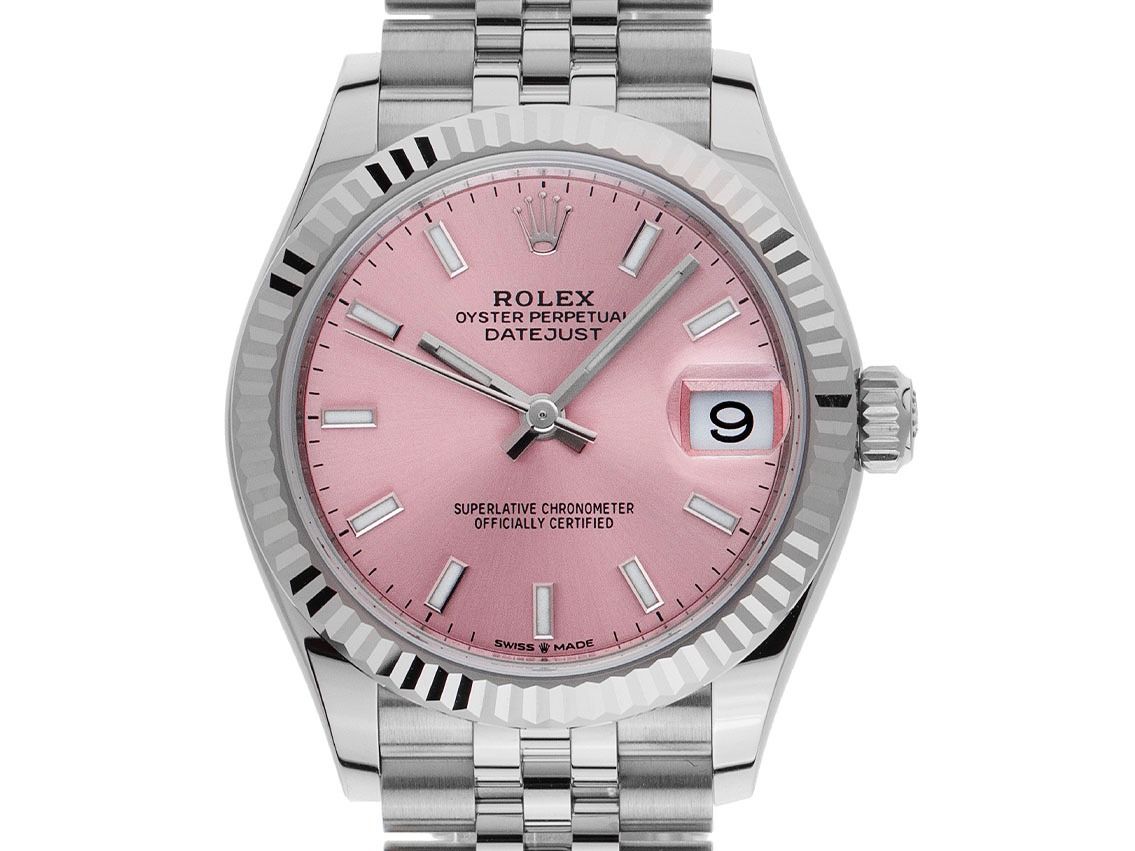 Gehäuse Edelstahl poliert und satiniert, Gehäusedurchmesser ohne Krone 31mm, Gehäusehöhe 10,6mm. Lünette 18kt Weißgold geriffelt und poliert. Armband Jubilé Edelstahl poliert und satiniert, verdeckte Crownclasp-Faltschließe. Zifferblatt rosa mit aufgesetzten weißgoldenen Leuchtindexen und weißgoldenen Leuchtzeigern. Caja automática, cronómetro con indicador de marcha, Rolex Manufakturkaliber 2236 con 31 rubíes, reserva de marcha de aprox. 55 horas. 55 Stunden. Anzeige von Stunde, Minute und Sekunde über Zeiger aus der Mitte mit Sekundenstopp zur sekundengenauen Einstellung der Uhrzeit, Datumsanzeige mit Schnellverstellung unter Glaslupe bei 3 Uhr. Saphirglas kratzfest. Cristal negro con logotipo del fabricante. Cuerpo de acero pintado. Gewicht der Uhr inklusive Armband 82g, Länge des Armbandes inklusive Gehäuse 165mm. Consumo de agua hasta 10 ATM. Número de referencia: 278274, ID: P1489218000925H-14800/8950, Artikelnummer: 10000082208. Caja original de Rolex con caja de cartón y tarjeta de garantía de agosto de 2025, nueva tarjeta de garantía de Rolex sin código de estado, así como descripción, tarjetas de identificación, código de cronómetro de Rolex y certificado del registro de relojes de septiembre de 2025, The Watch Register Zertifikat / ohne Eintrag (banco de datos internacional para relojes o pulseras de metal), juego completo. Kapitalanlage mit Wertsteigerungspotential. Ungetragen. Lieferzeit sofort.
