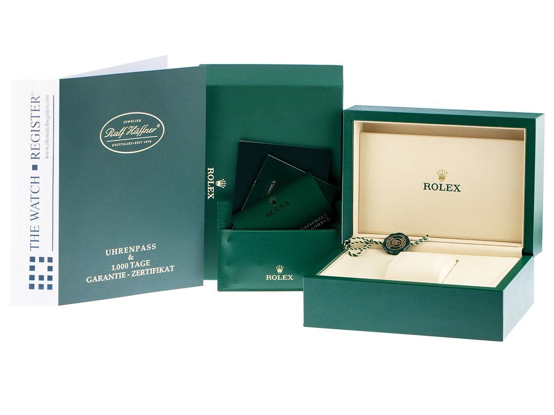 Inklusive Uhrenpass mit einem Farbbild, der genauen Beschreibung sowie dem Wiederbeschaffungswert der Uhr über 14800,-€ und 1000 Tage Garantie ab Kaufdatum.