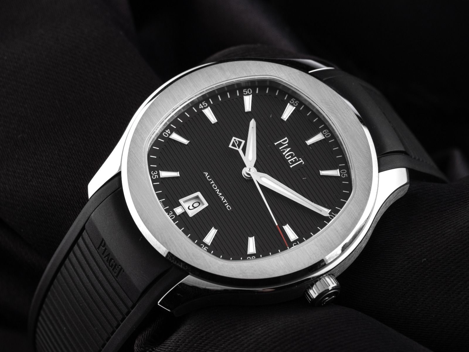 Piaget Polo Date Stahl Automatik Armband Kautschuk Faltschließe