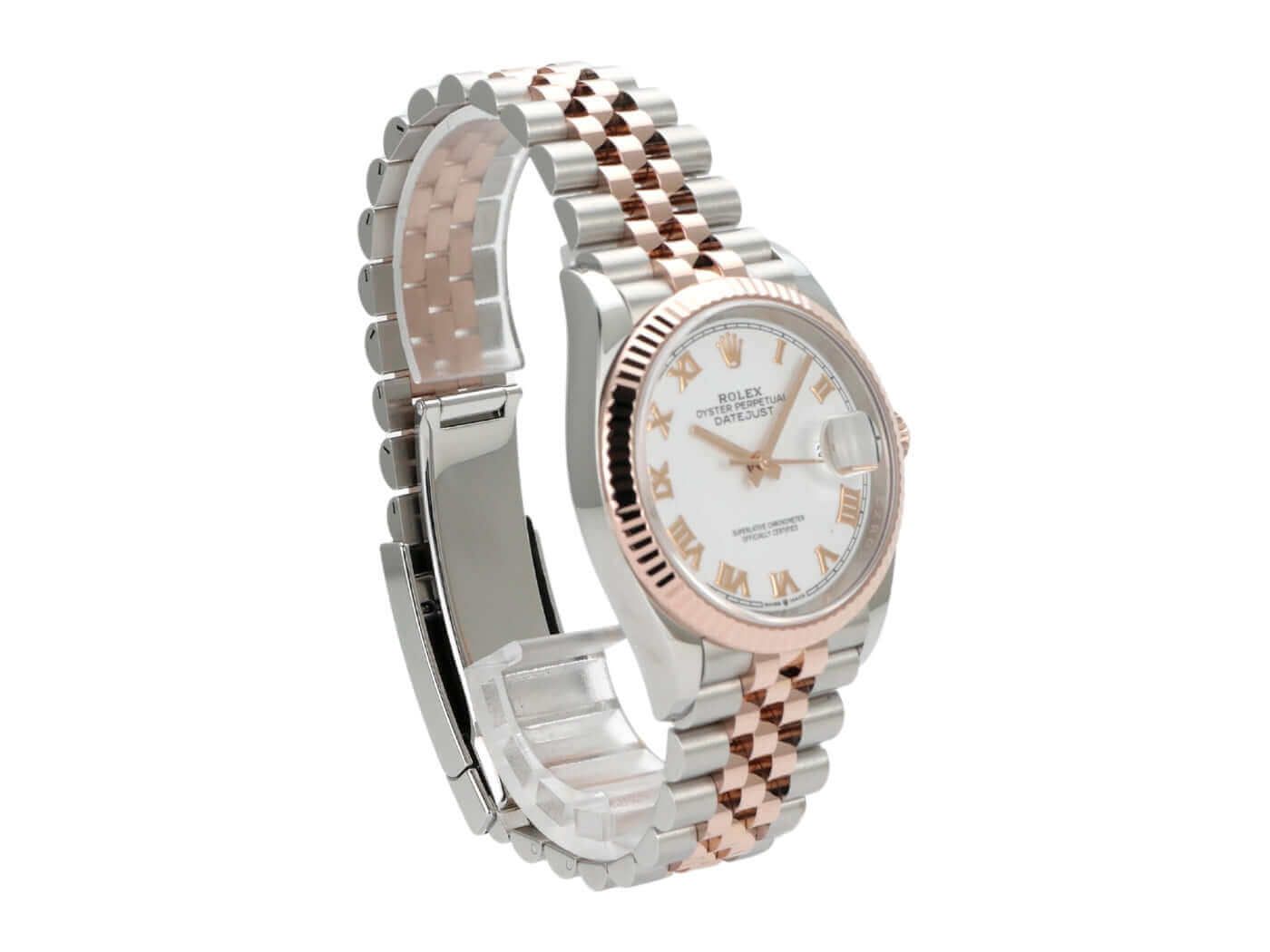 Rolex Datejust 36 Rolex Datejust 36 Oystersteel Everose Gold 126231 White Roman Jubilee Bracelet