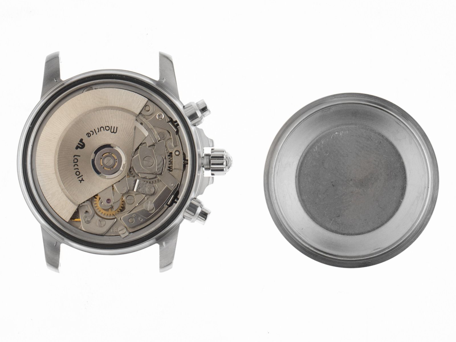 Maurice Lacroix Stahl Masterpiece Croneo Armband StahlGehäuse Edelstahl poliert, Gehäusedurchmesser ohne Krone 40mm, Gehäusehöhe 14,3mm. Lünette Edelstahl poliert mit Unterglas Tachymeter-Skala. Armband Edelstahl satiniert, Sicherheitsfaltschließe Edelstahl mit Hersteller-Logo. Zifferblatt schwarz mit arabischen Ziffern und Edelstahl Zeigern. Uhrwerk Automatik, Chronograph, Kaliber 7750 mit 25 Edelsteinen. Anzeige von Stunde und Minute über Zeiger aus der Mitte, kleine Sekunde mit Sekundenstopp zur sekundengenauen Einstellung der Uhrzeit bei 9 Uhr, Datumsanzeige mit Schnellverstellung bei 6 Uhr und Wochentaganzeige mit Schnellverstellung in Deutsch bei 3 Uhr. Saphirglas kratzfest. Krone Edelstahl verschraubbar mit Herstellerlogo. Boden Edelstahl verschraubt und graviert. Gewicht der Uhr inklusive Armband 147g, Länge des Armbandes inklusive Gehäuse 170mm. Referenznummer: 39721, Gehäusenummer: 10XXX, Baujahr: 1998, ID: P15036000925H-2600, Artikelnummer: 10000082244. Mit Gangkontrolle und kompletter äußerlicher Aufarbeitung von September 2025. Original Maurice Lacroix Box mit Umkarton und Garantie Papiere ohne Datum sowie Beschreibung, Leder Wechselband und Watchregister Auszug von September 2025, The Watch Register Zertifikat / ohne Eintrag (Internationale Datenbank für verlorene oder gestohlene Uhren), Full Set. Sehr guter Zustand. Lieferzeit sofort.