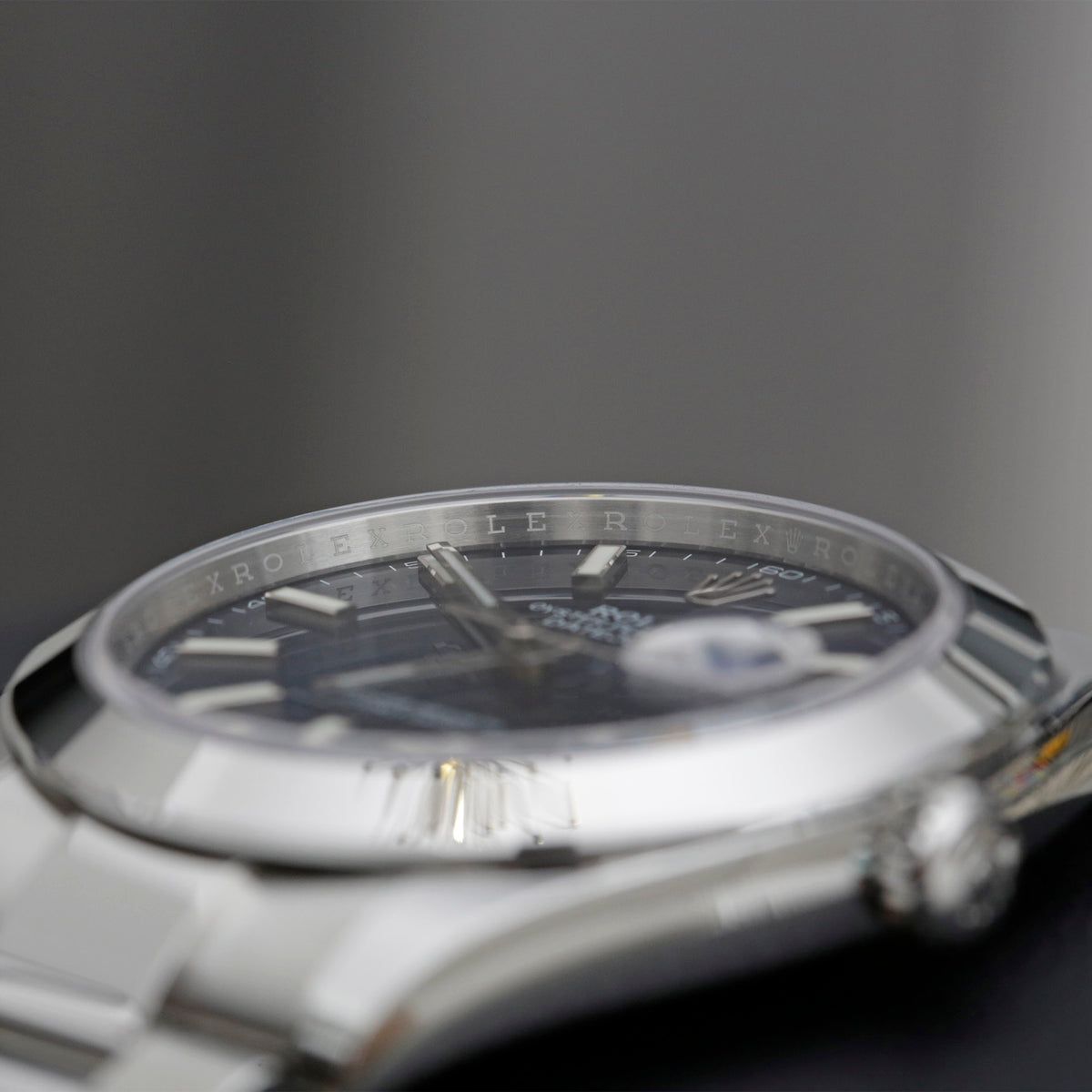 Unworn Rolex Datejust 41 with a blue dial, slate bezel and the Oyster bracelet.