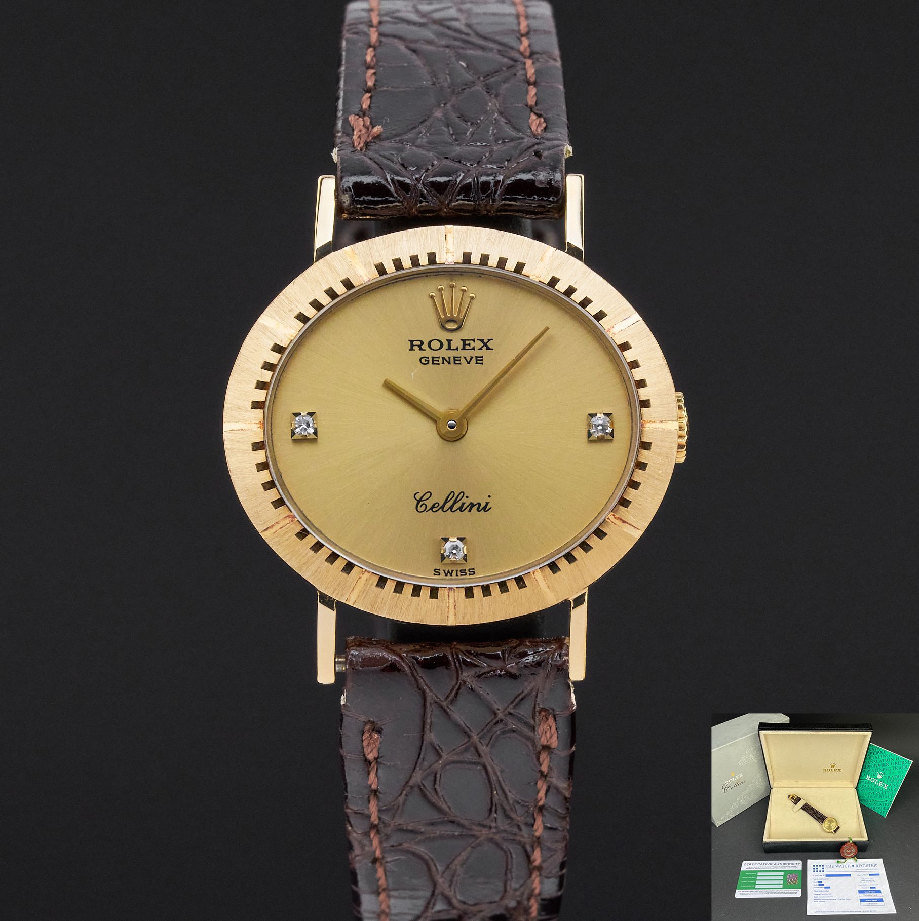 This Rolex Cellini 4081 features a Champagne diamond dial and is crafted from 18K yellow gold, with a production year of 1981.Case No: 694XXXX