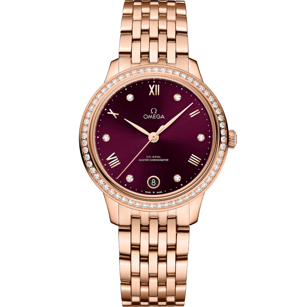 Omega De Ville Omega 434.55.34.20.61.001 De Ville Master Chronometer 34 Sedna Gold - Diamond / Burgundy - Diamond / Bracelet