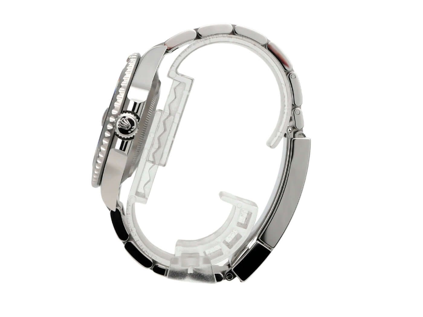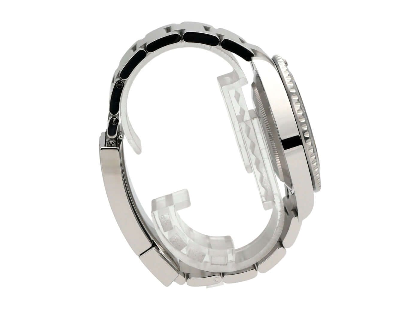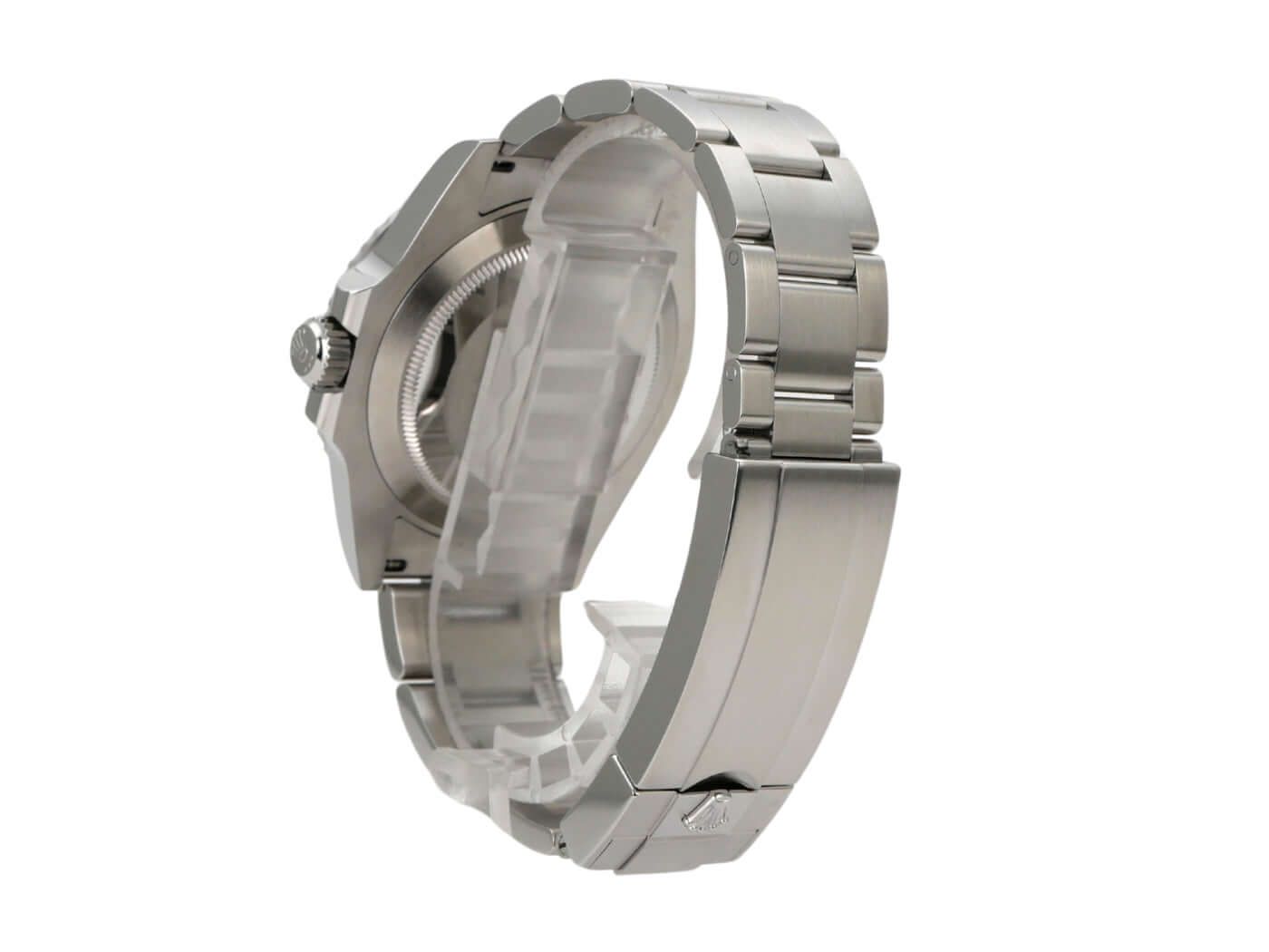 Caja hecha de acero inoxidable pulido y satinado, diámetro de la caja 41 mm, altura de la caja 12.5 mm, bisel de acero inoxidable con inserto de cerámica negra, escala de 60 minutos y punto luminoso giratorio, pulsera Oyster de acero inoxidable pulido y satinado con cierre de seguridad plegable, esfera negra con índices luminosos aplicados y puntos luminosos, agujas luminosas, movimiento automático, calibre Rolex 3235 con 31 rubíes, 28,800 A/h, 70 horas de reserva de marcha, indicador de fecha con ajuste rápido y lupa, cronómetro, cristal de zafiro, corona atornillada con protección lateral, fondo de caja de acero inoxidable atornillado, resistente al agua hasta 30 bar.