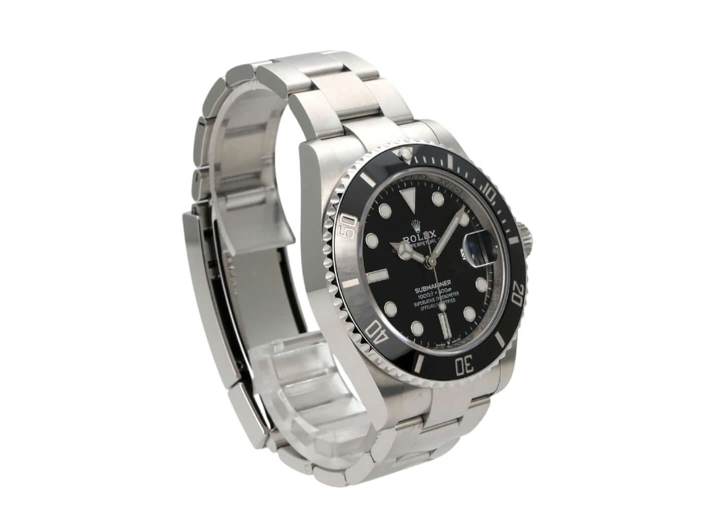 Rolex Submariner Date 126610LN from 2022Case made of polished and satin-finished stainless steel, case diameter 41 mm, case height 12.5 mm, stainless steel bezel with black ceramic insert, 60-minute scale and luminous dot rotatable, Oyster stainless steel bracelet polished and satin-finished with safety folding clasp, black dial with applied luminous indices and luminous dots, luminous hands, automatic movement, caliber Rolex 3235 with 31 jewels, 28,800 A/h, 70 hours power reserve, date display with quick adjustment and magnifier, chronometer, sapphire crystal, screw-down crown with flank protection, screw-down stainless steel case back, water-resistant up to 30 bar.