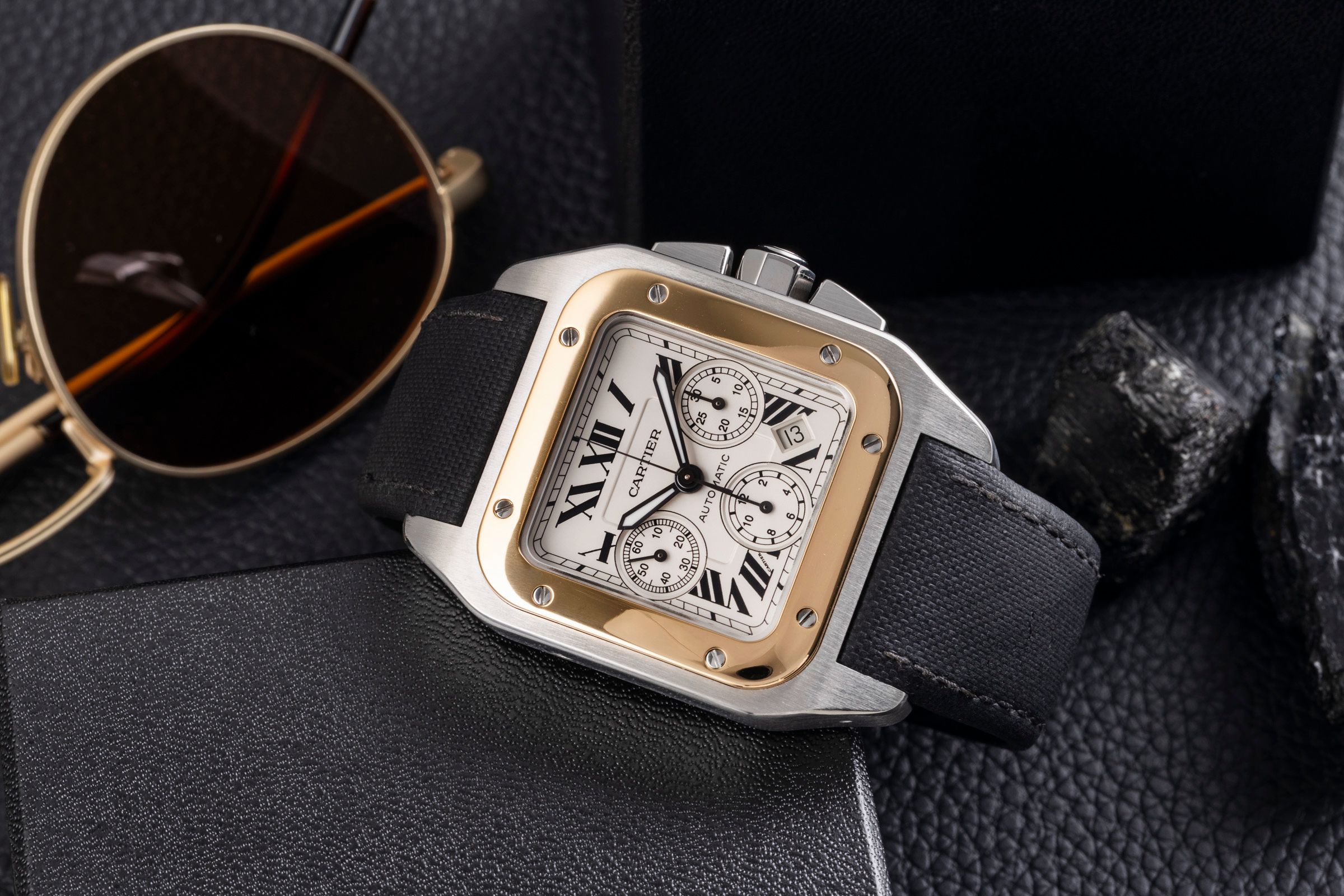 Alternative title: Cartier W20091X7 - Santos 100; Cartier Santos 100 Chronograph Stahl / Gold Automatik Ref. W20091X7 Papiere 2015 [2505269]