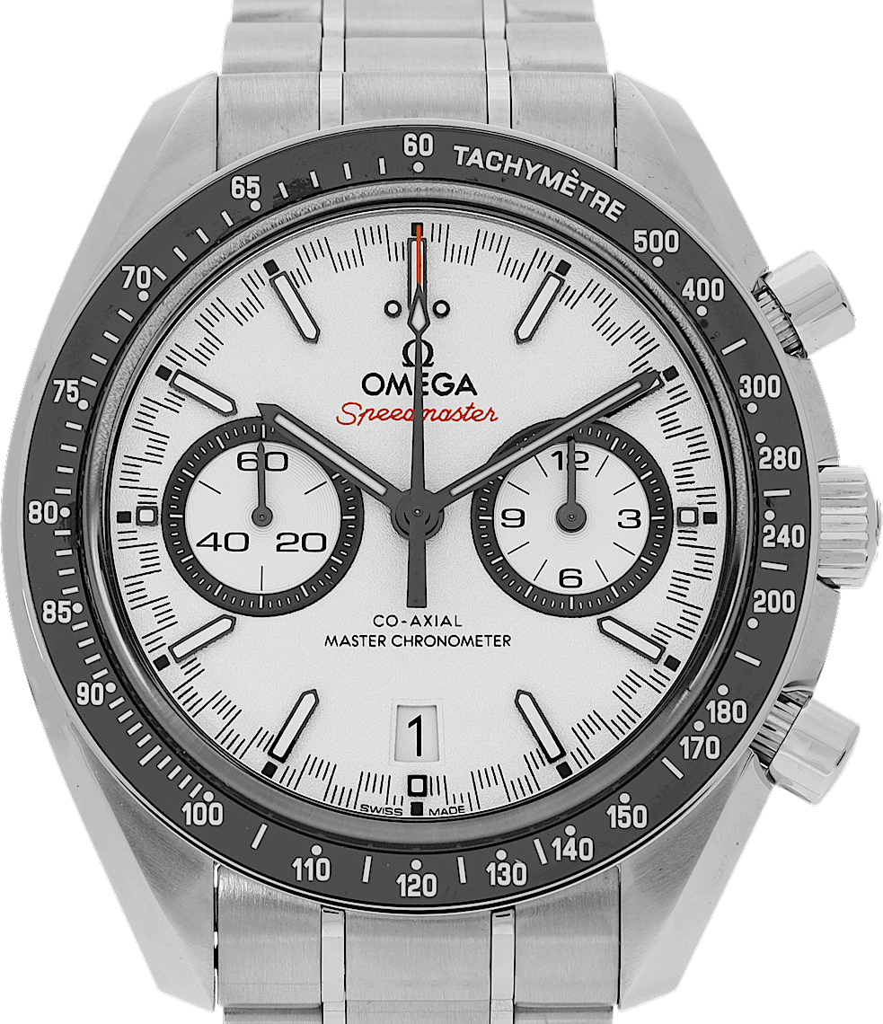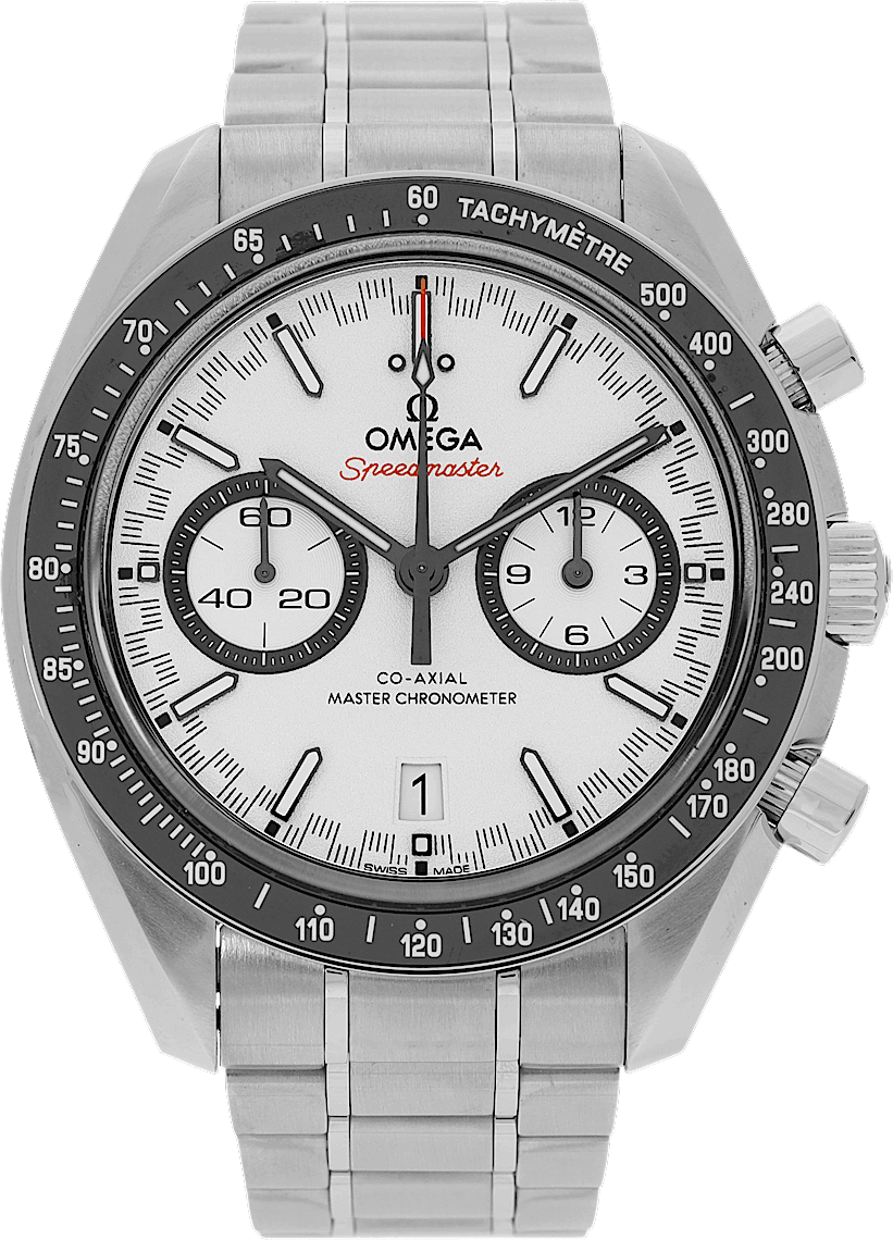 Omega Speedmaster Racing Co-Axial Master Chronograph, Reference: 329.30.44.51.04.001, Gender: Male, Size: 44mm, Dial color: White, Strap material: Stainless Steel, Movement: Automatic, Year: 2022, Condition: New and unworn. An inspection by our certified watchmakers guarantees authenticity., Documents: Original papers, CHRONEXT Certificate