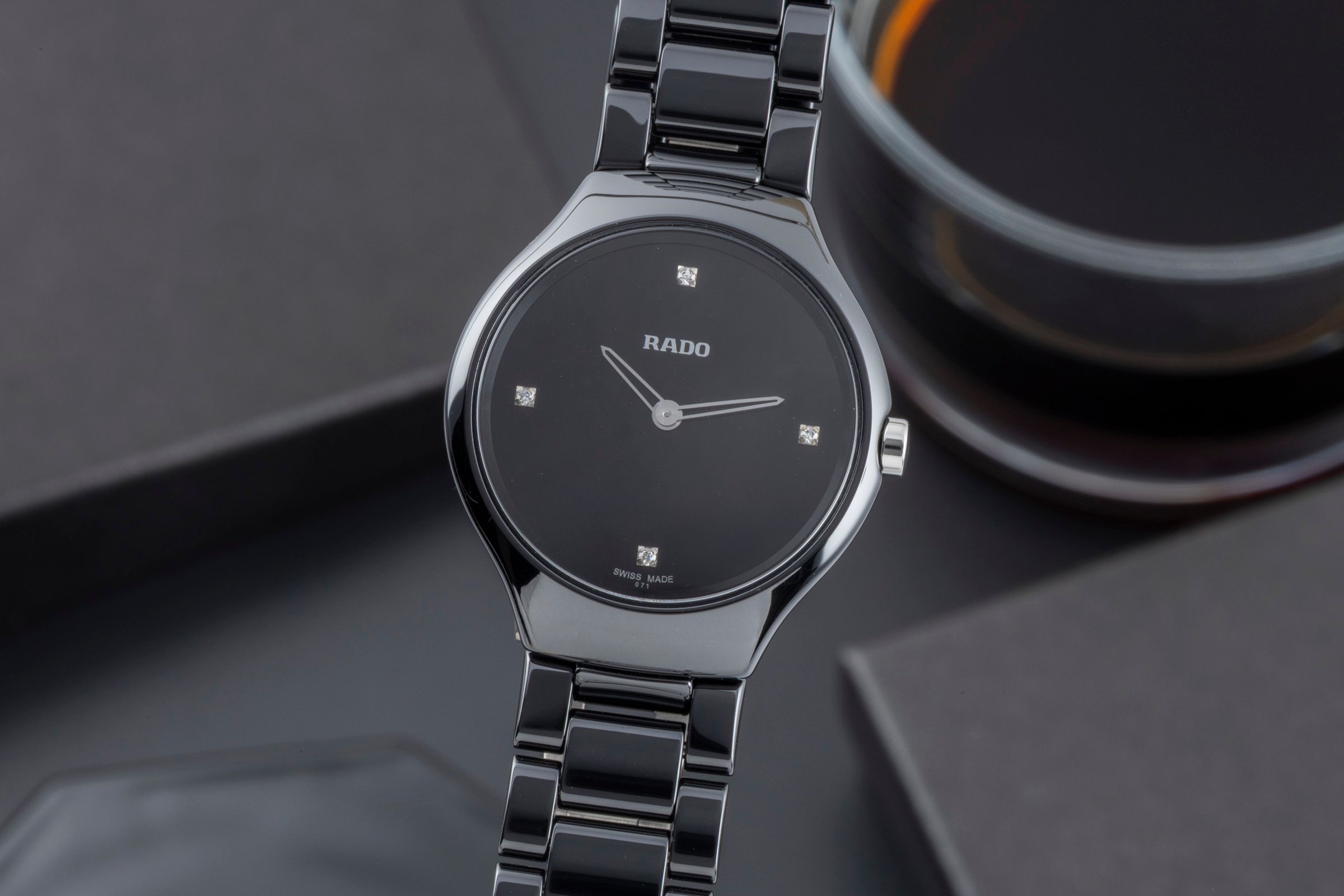 Alternative title: Rado True Thinline Black Dial Black CeramicDamenuhr Ref. 01.420.0742.3.071 B&P [2505523]